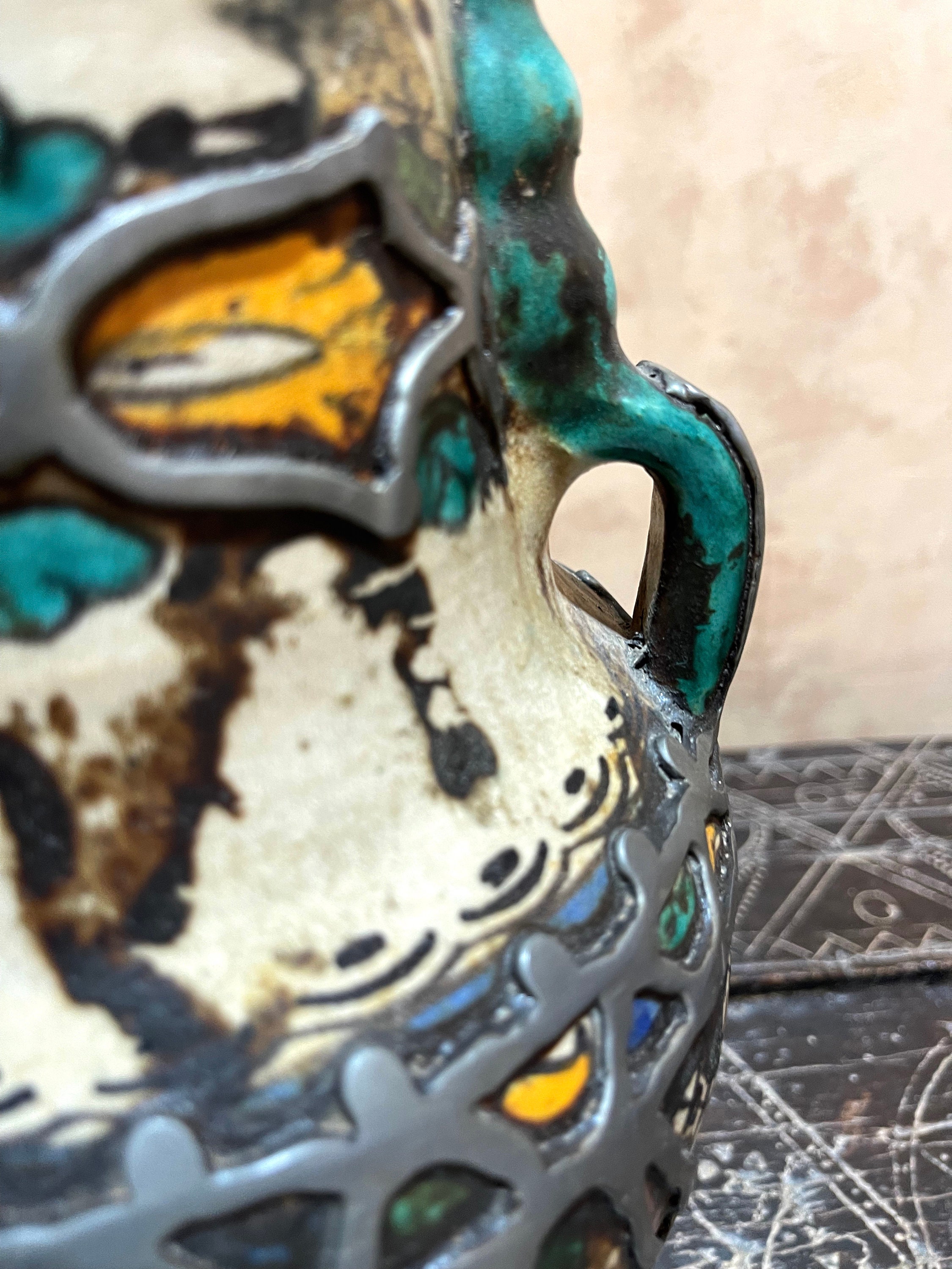 Made From Local White Clay. First Mixed In Water For About 8 Hours, Then Exposed To Air To Dry Overnight. The next morning, we begin to work the mixture with the feet and hands. The Master Potter "Maalem" Process After For The Artistic Creation Of The Piece Before Leaving The Piece In The Shade About 4 Consecutive Days. The next step is to leave it in the sun for a week. Finally, The Piece Will Go Into The Oven Fire Heated 1200 Celsius Twice With The Last As A Glazed Piece.