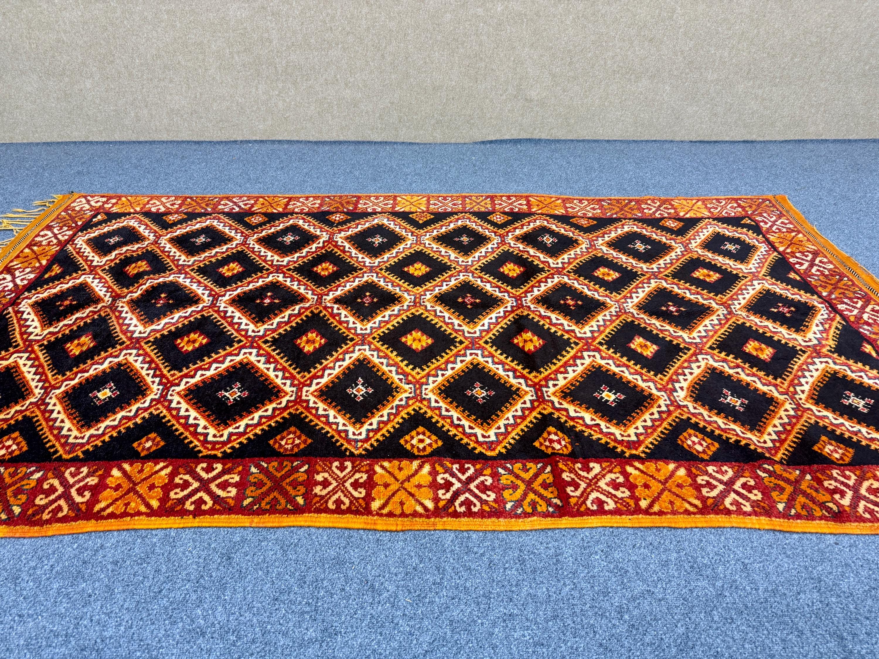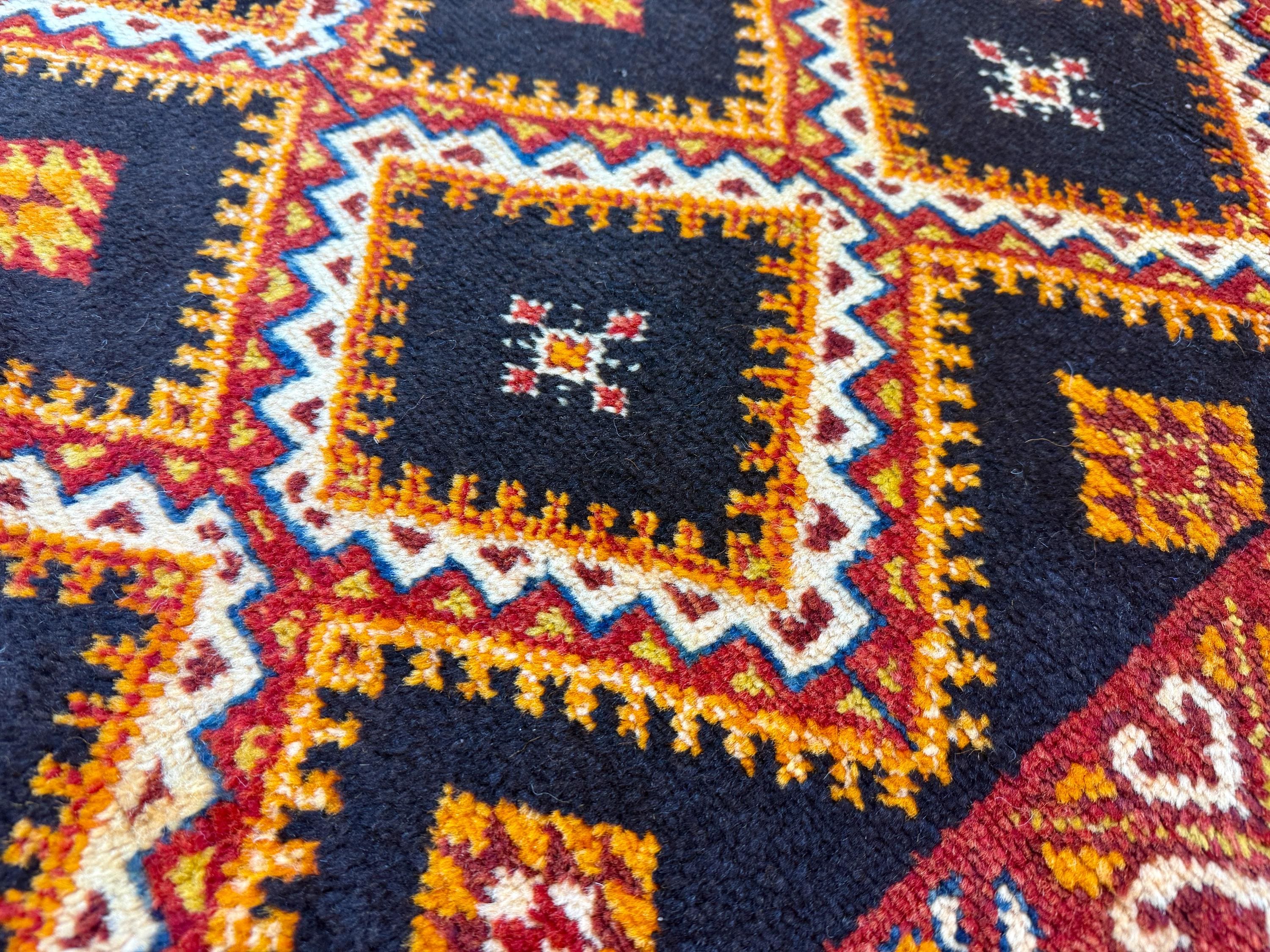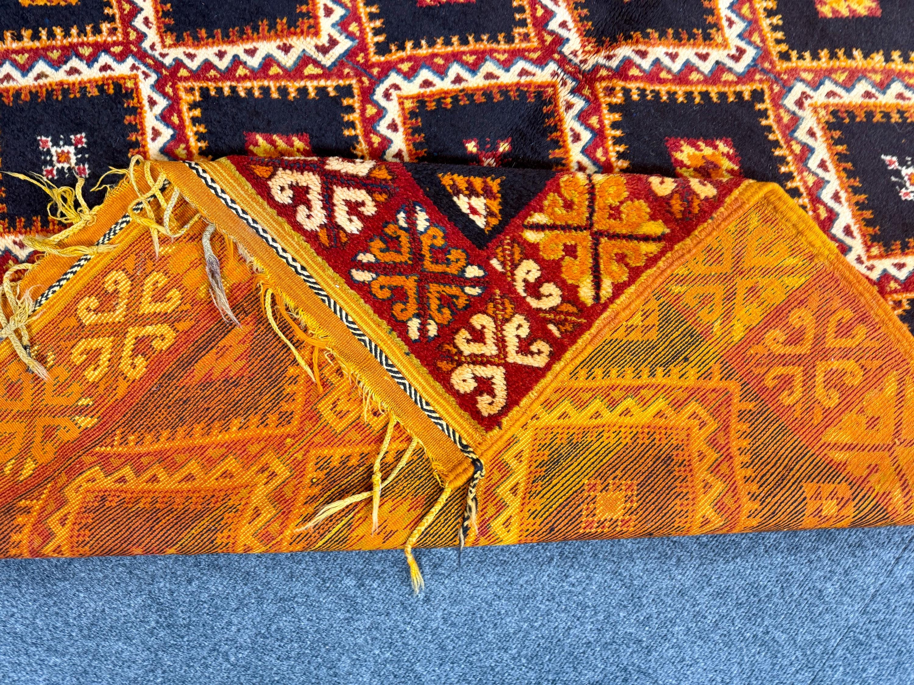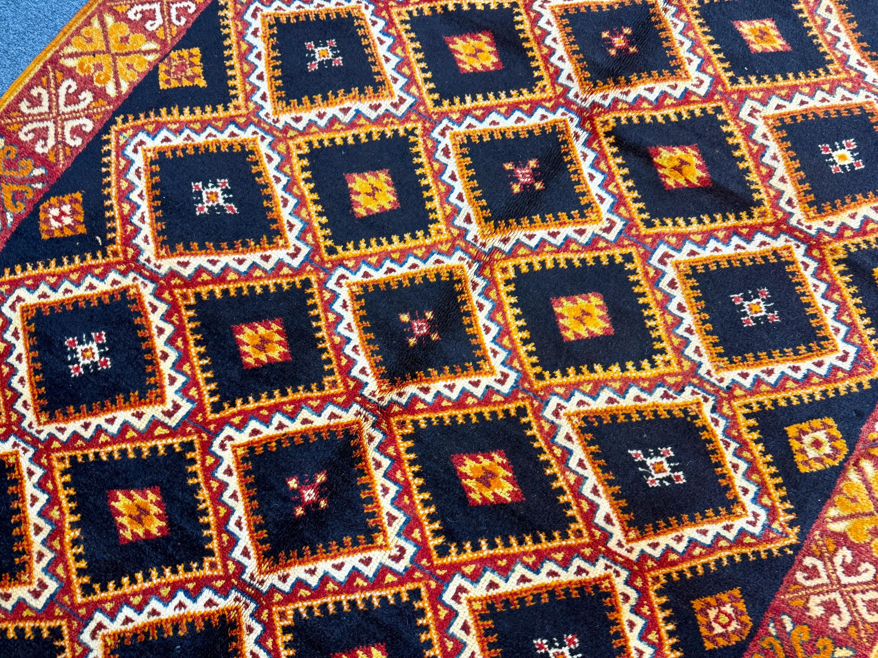 Discover the beauty of Moroccan craftsmanship with this vintage Taznakht rug (9.4 x 5.2 ft), a true example of the rich weaving traditions of the Taznakht region in southern Morocco. Known for their vibrant colors and precise weaving techniques, Taznakht rugs are highly valued for both quality and artistic design.