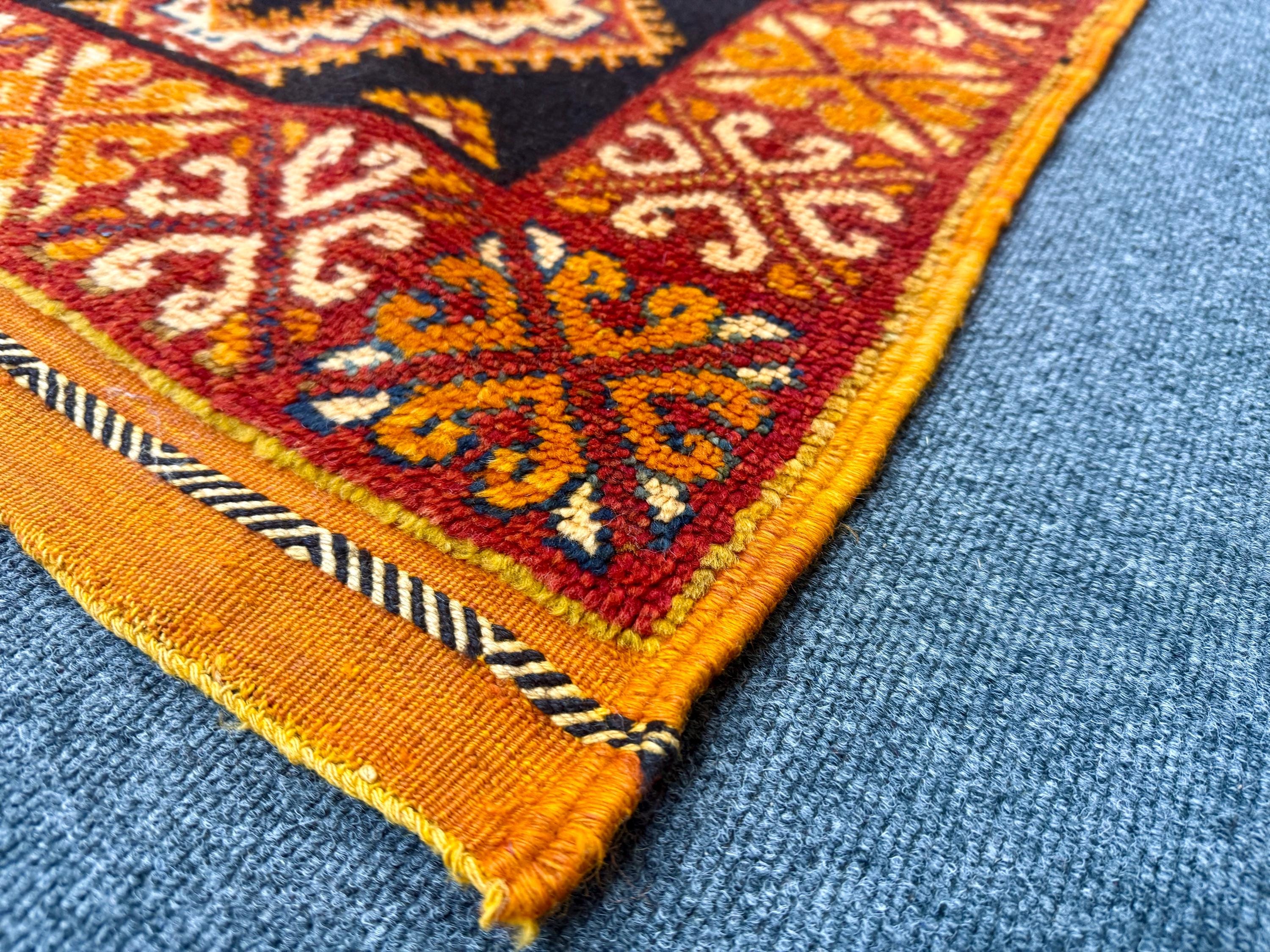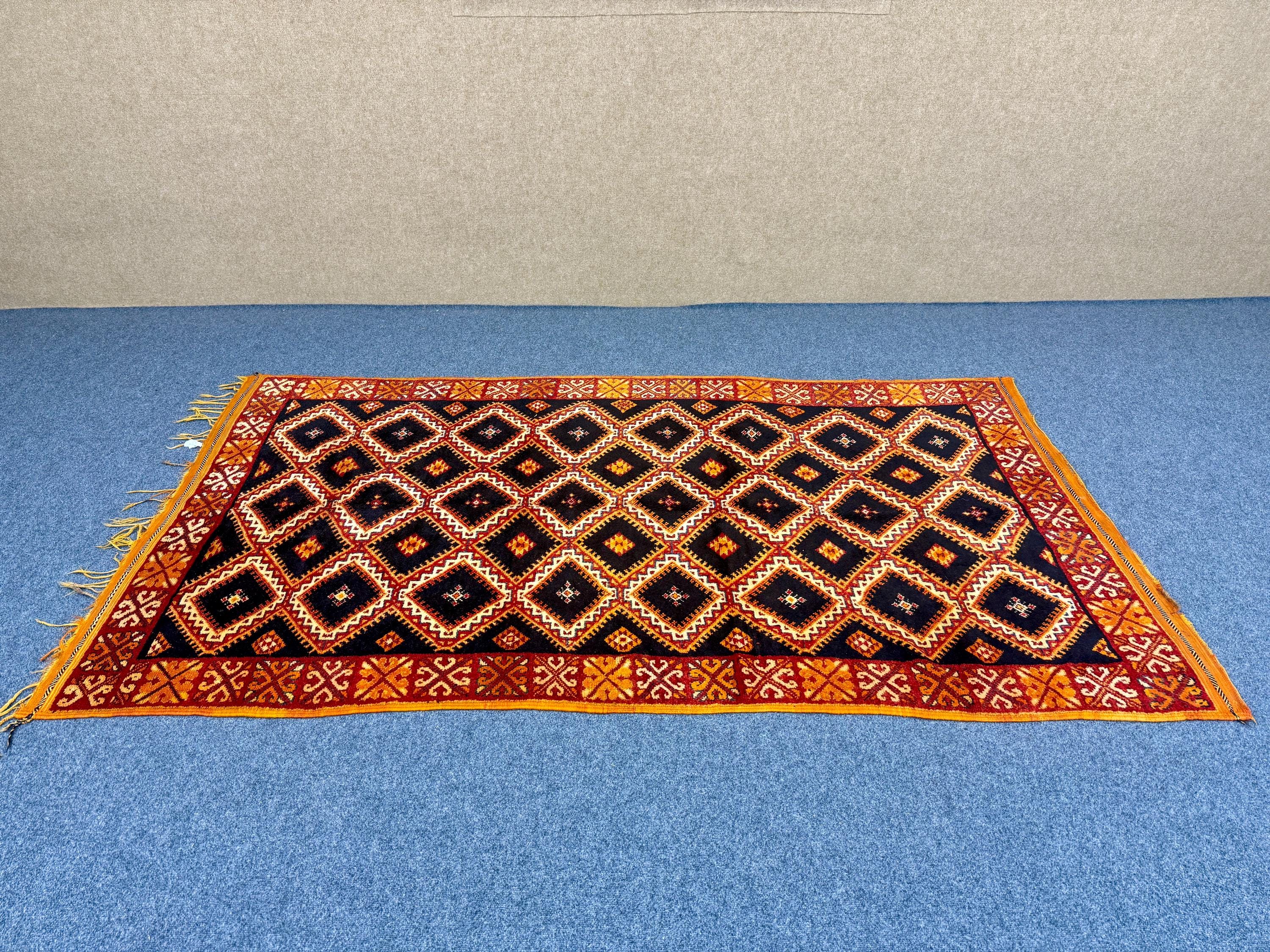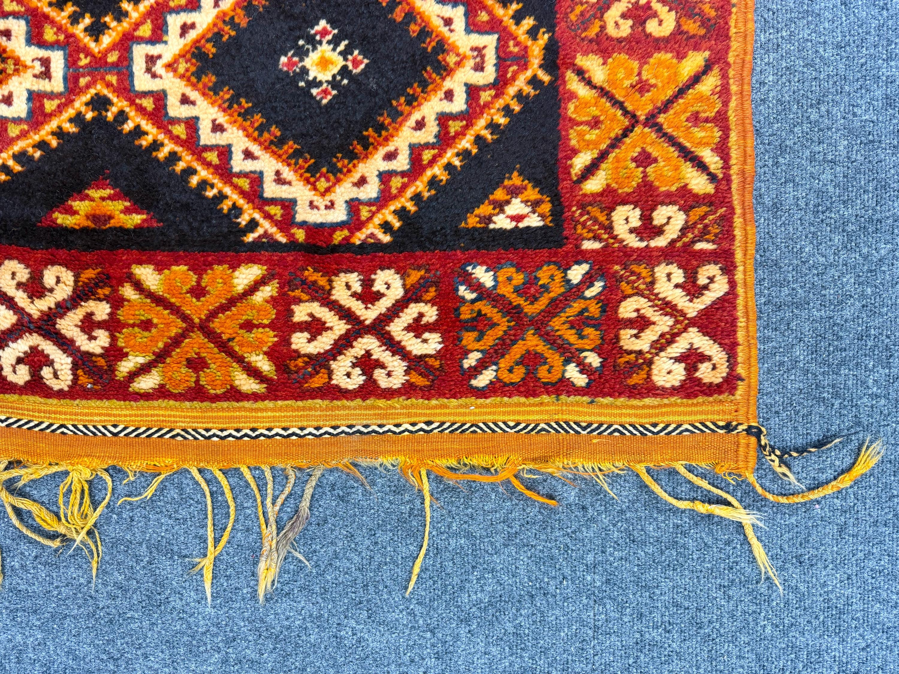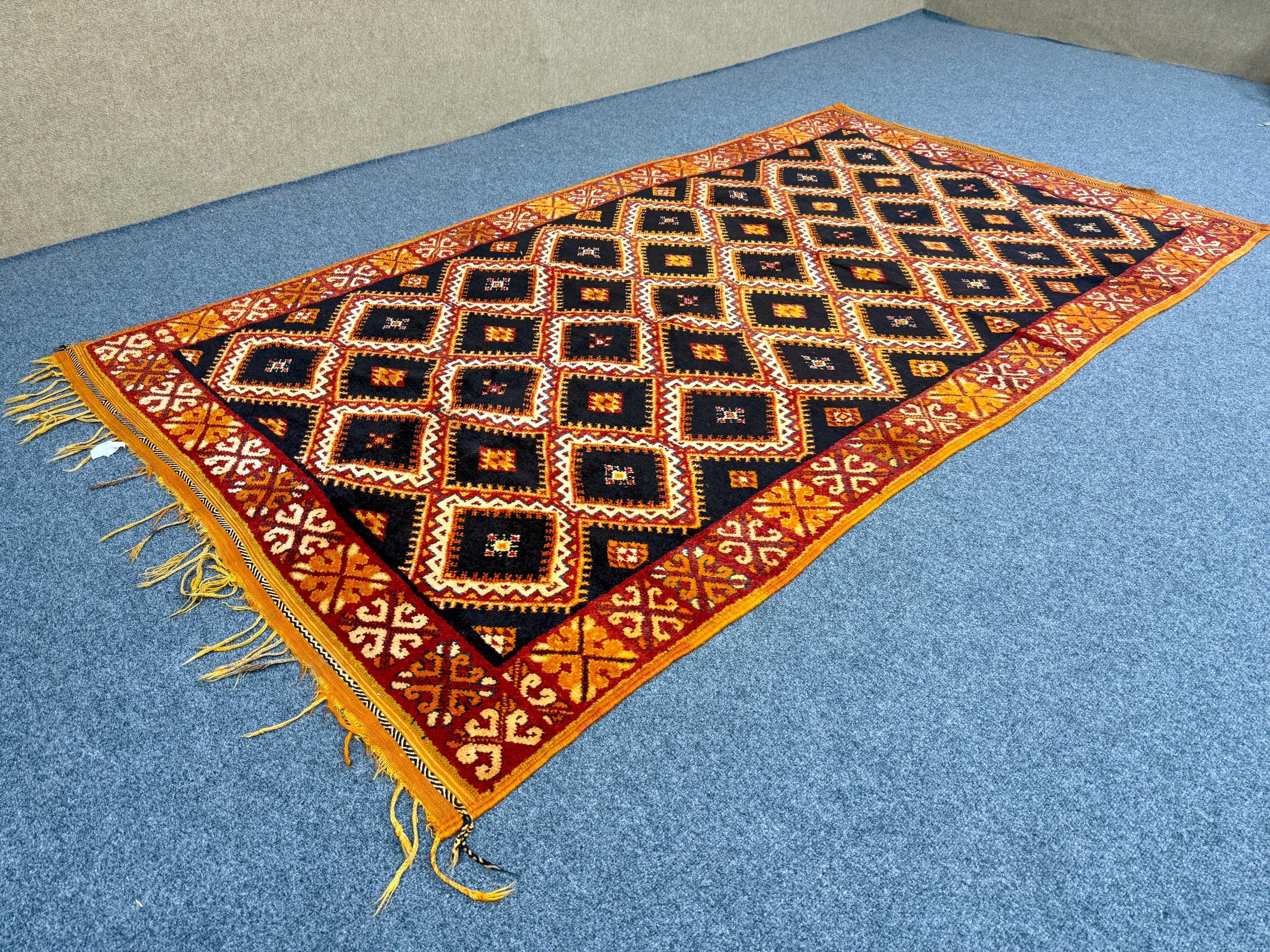 Discover the beauty of Moroccan craftsmanship with this vintage Taznakht rug (9.4 x 5.2 ft), a true example of the rich weaving traditions of the Taznakht region in southern Morocco. Known for their vibrant colors and precise weaving techniques, Taznakht rugs are highly valued for both quality and artistic design.
