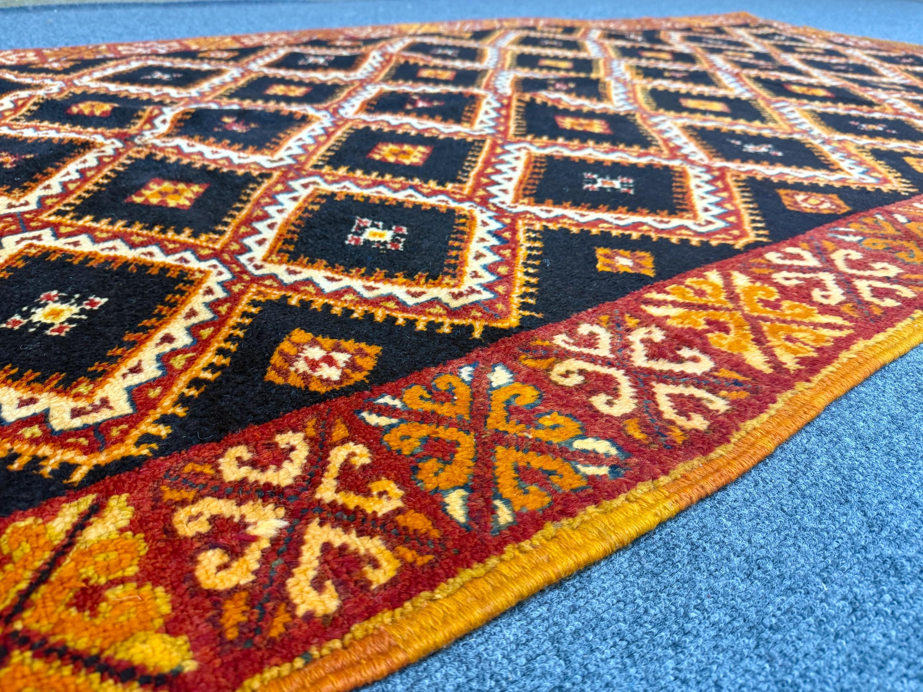 This piece is woven from premium, high-quality wool, offering exceptional softness, durability, and a luxurious texture. Its traditional tribal motifs and warm tones make it a perfect statement piece for living rooms, bedrooms, or boho-inspired interiors.
