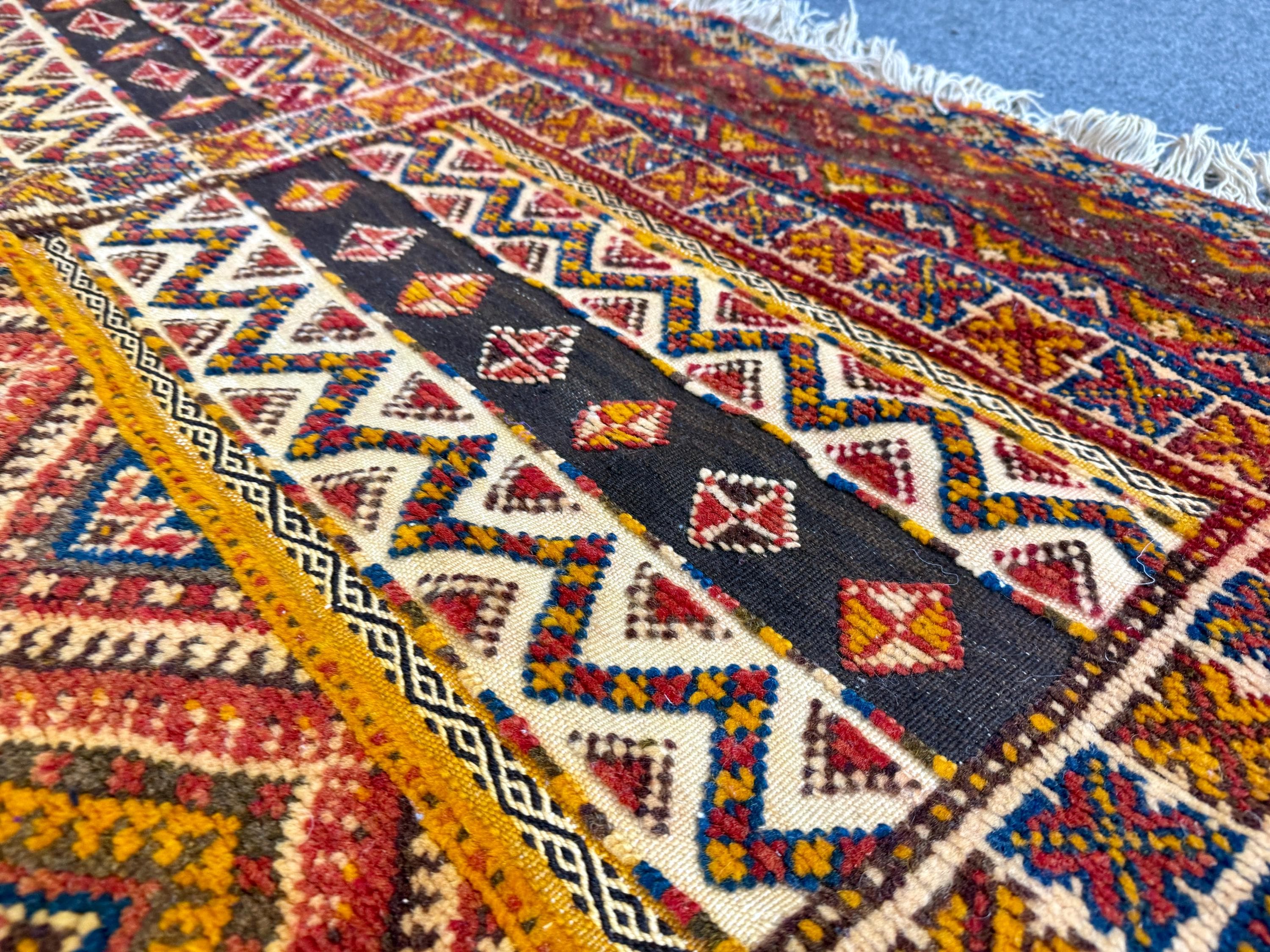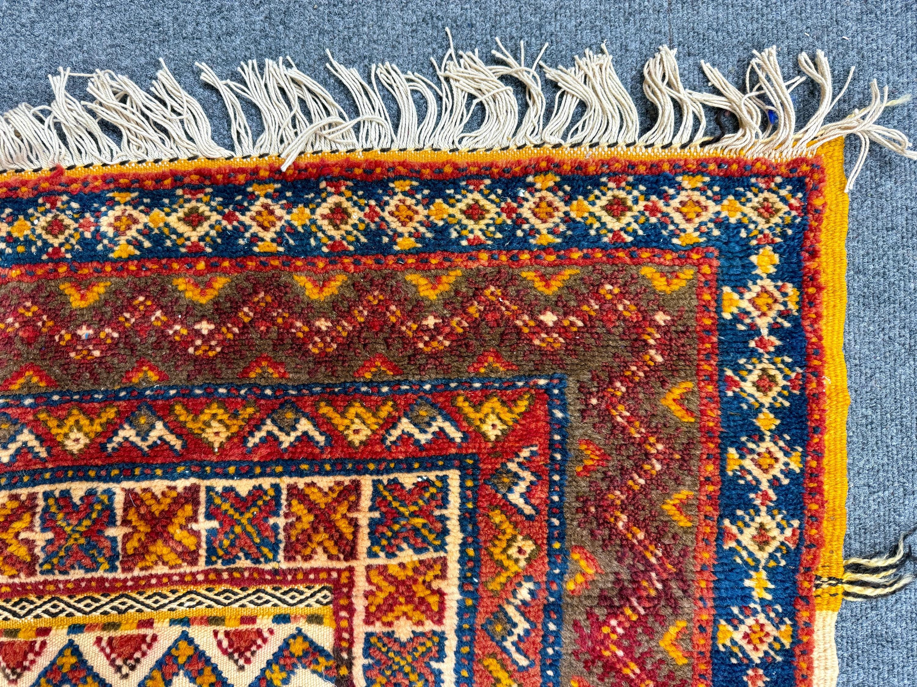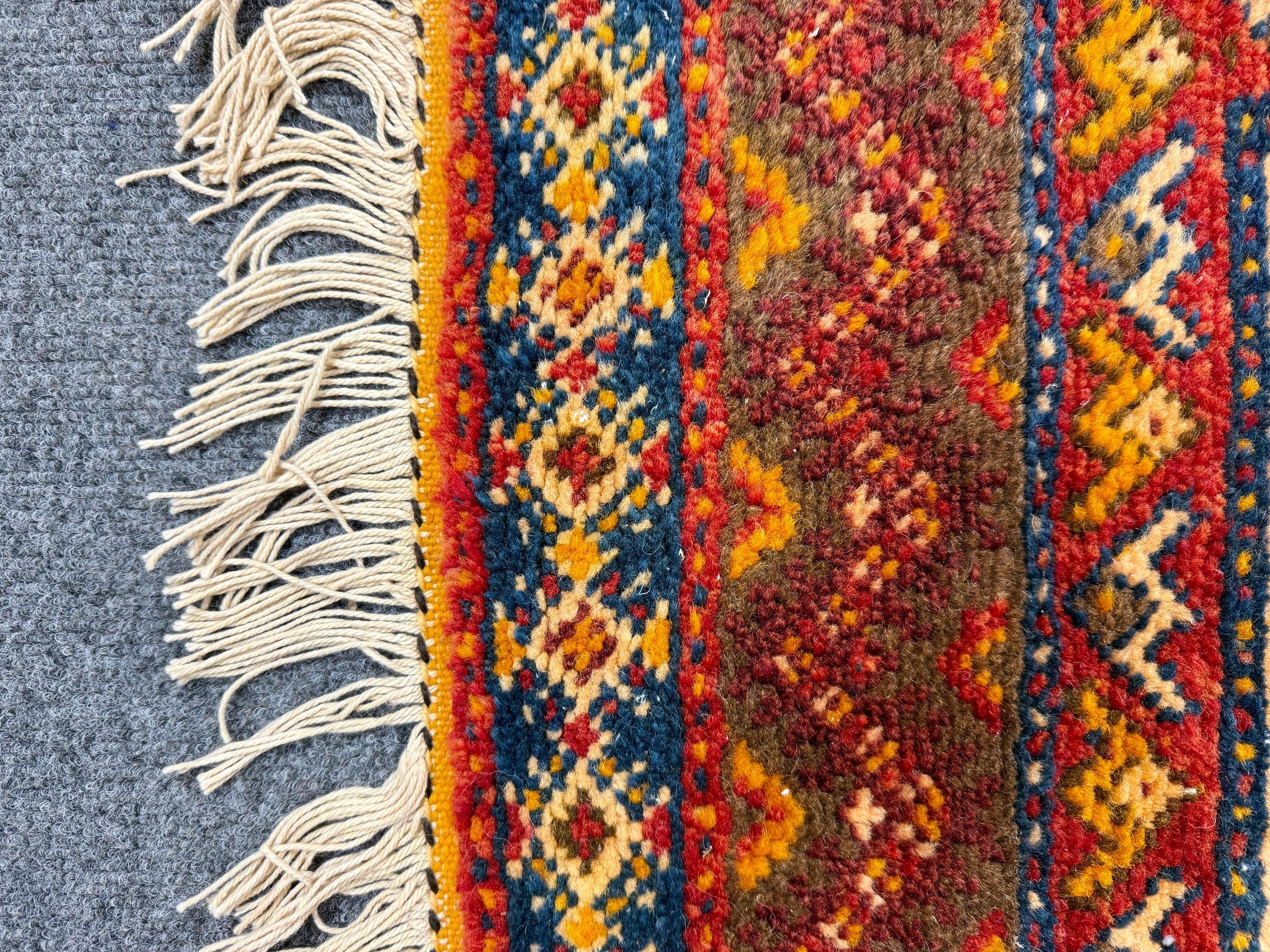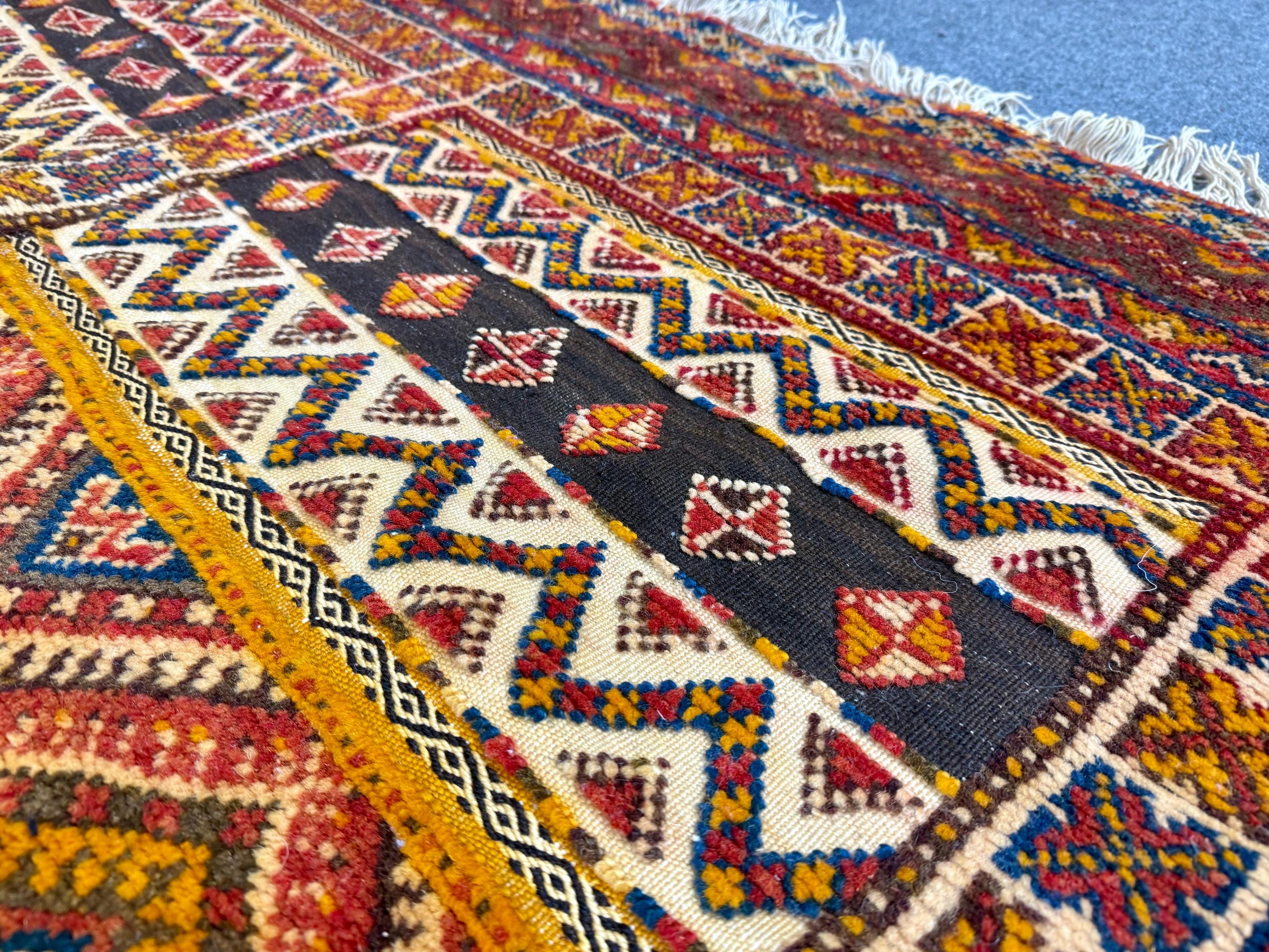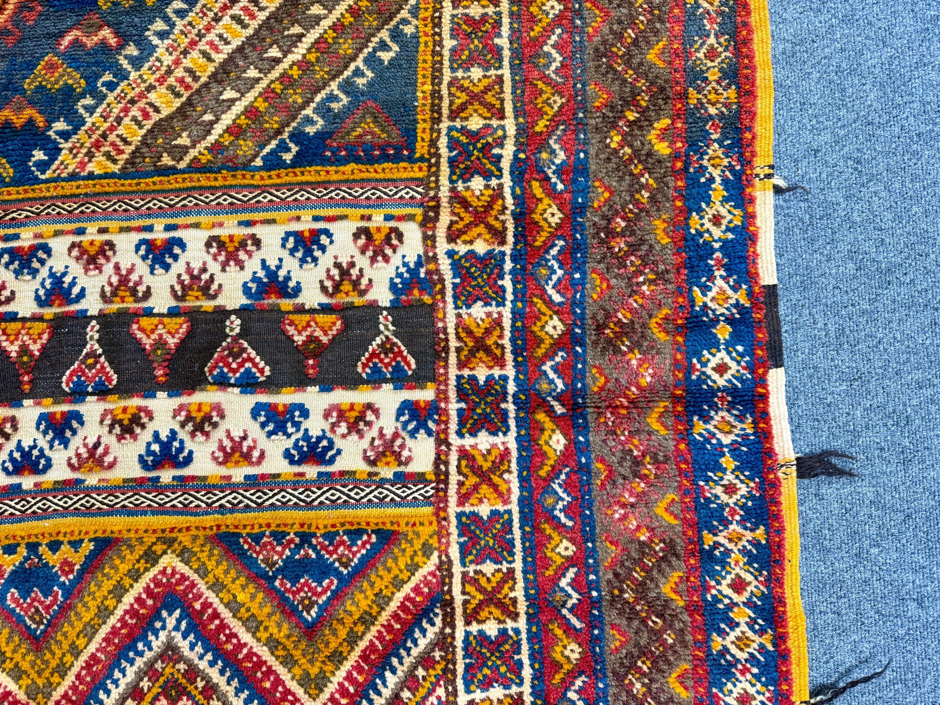 This Moroccan vintage rug is an authentic Berber piece, entirely handwoven from natural wool by skilled artisans in Morocco. Created using traditional techniques passed down through generations, this rug carries history, craftsmanship, and soul in every thread.