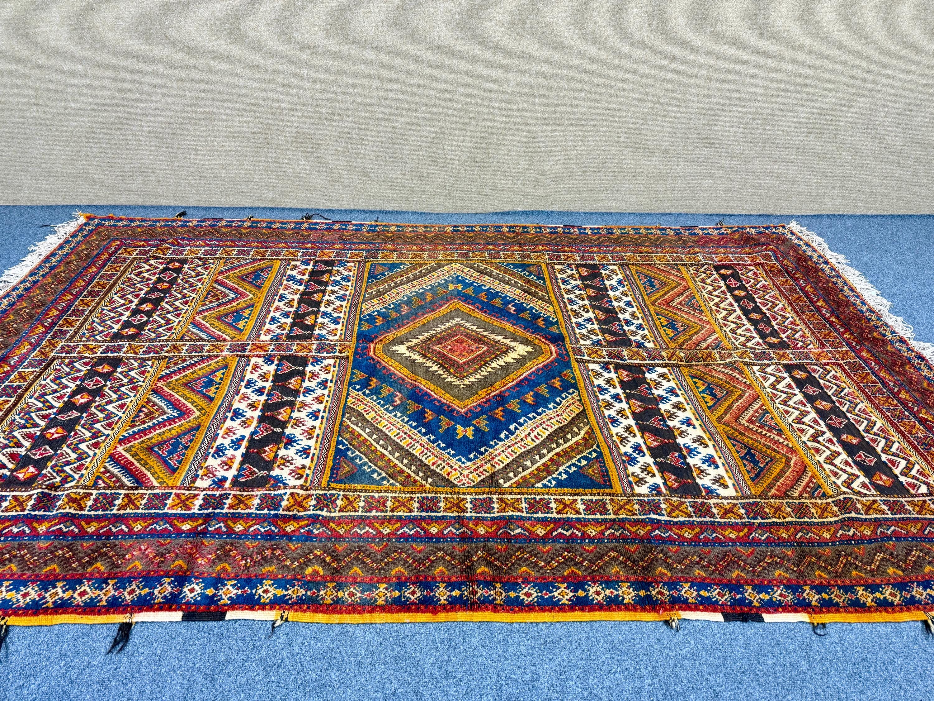 Its generous size makes it ideal for large living rooms, dining areas, or open spaces, bringing warmth, depth, and timeless character. This handmade Berber rug blends effortlessly with bohemian, modern, Scandinavian, rustic, and eclectic interiors.