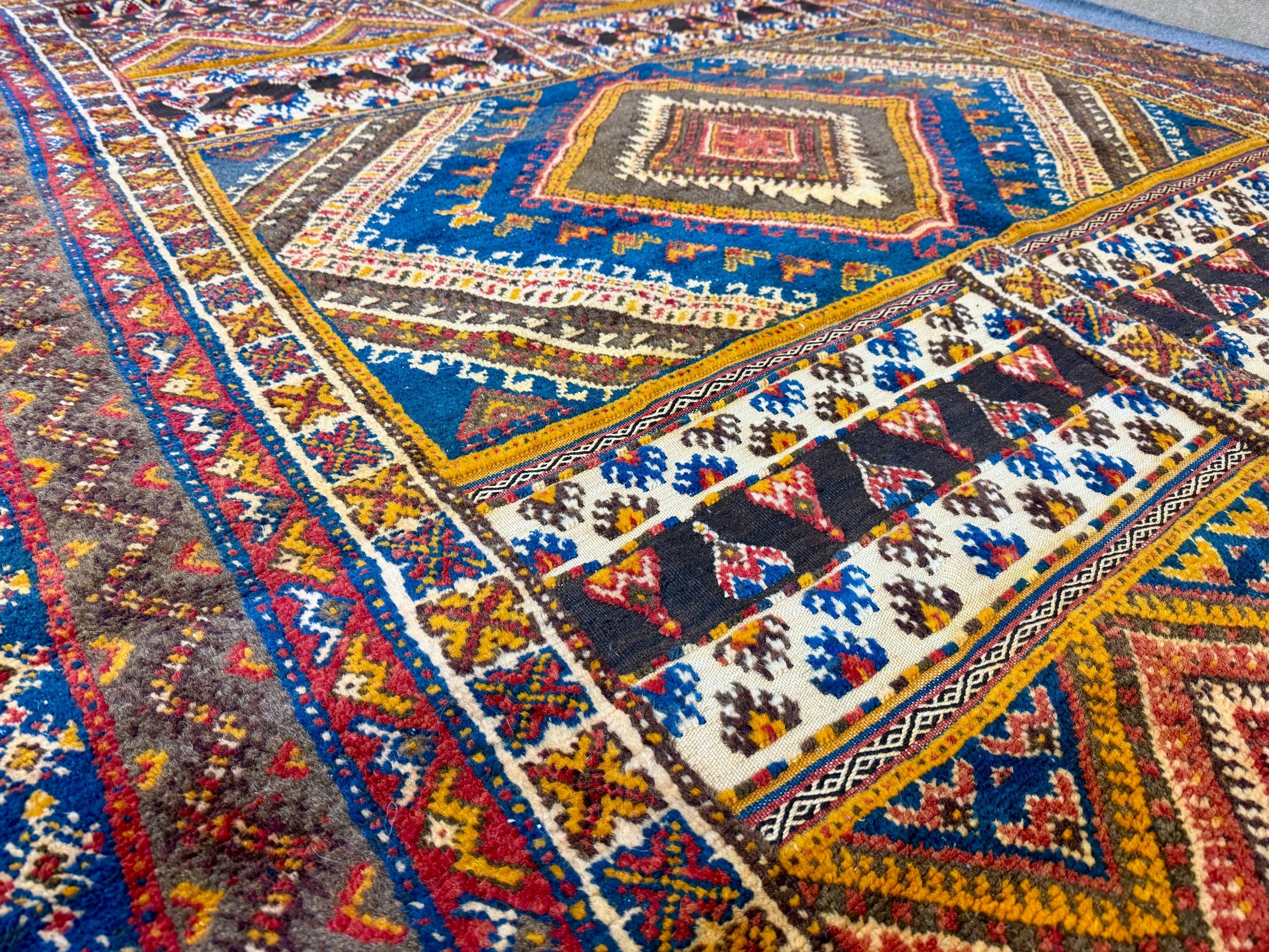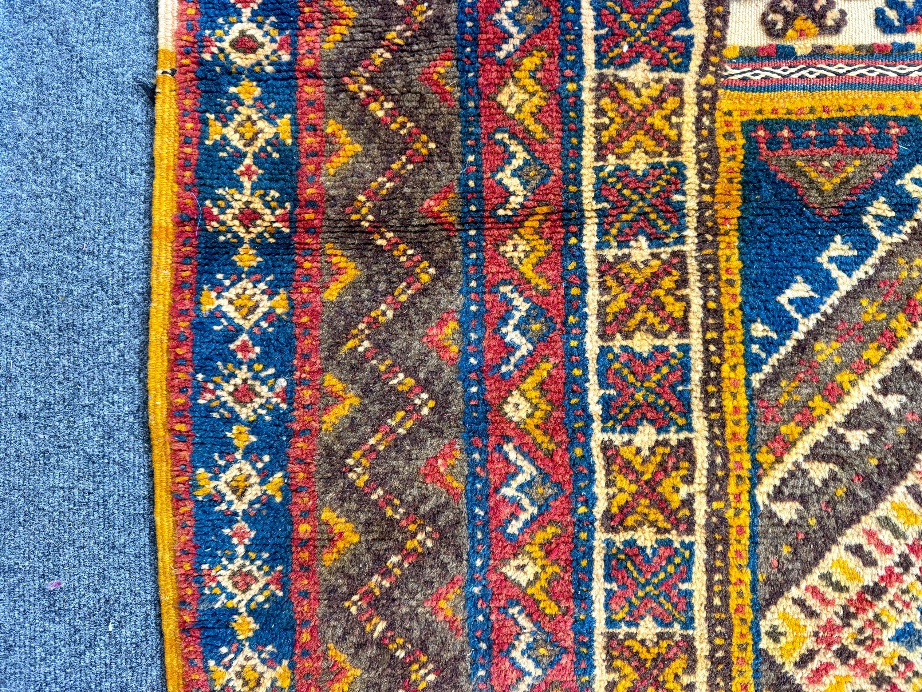 Over time, the wool has aged beautifully, developing a soft texture and natural patina that only true vintage Moroccan rugs possess. Subtle variations in color and weave are signs of authenticity and make this rug a truly one-of-a-kind piece.