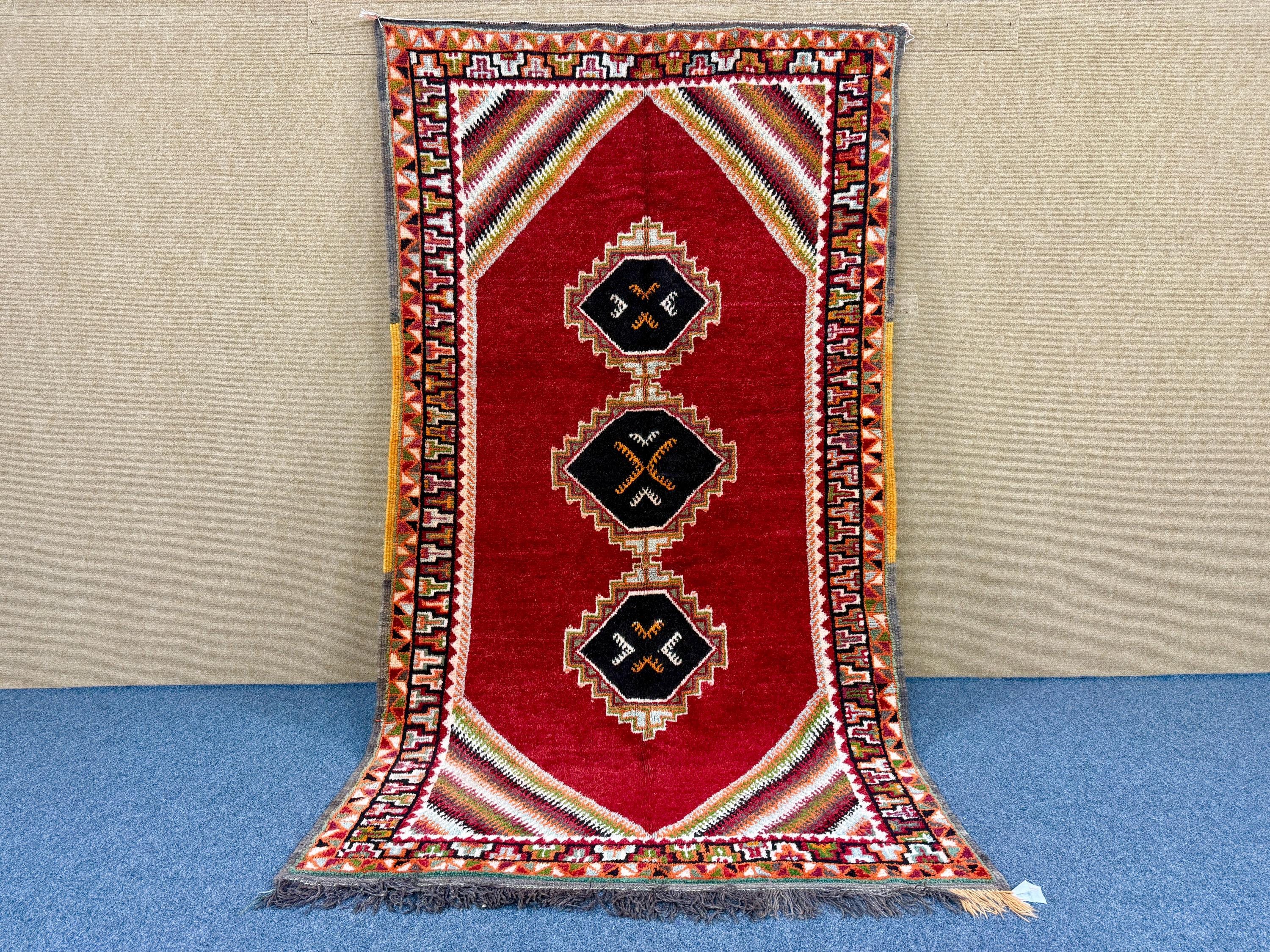 Vintage Red Moroccan Rug 5.1 x 9 ft – Handwoven Wool Berber Rug