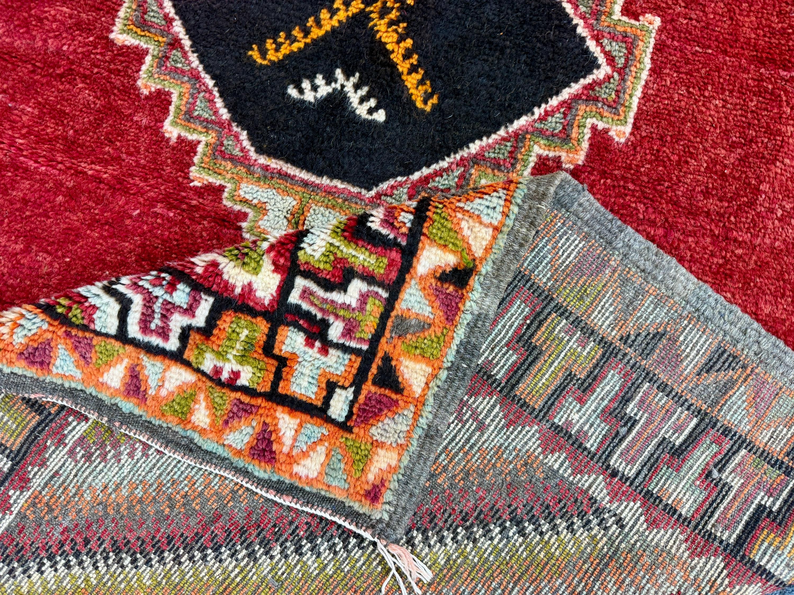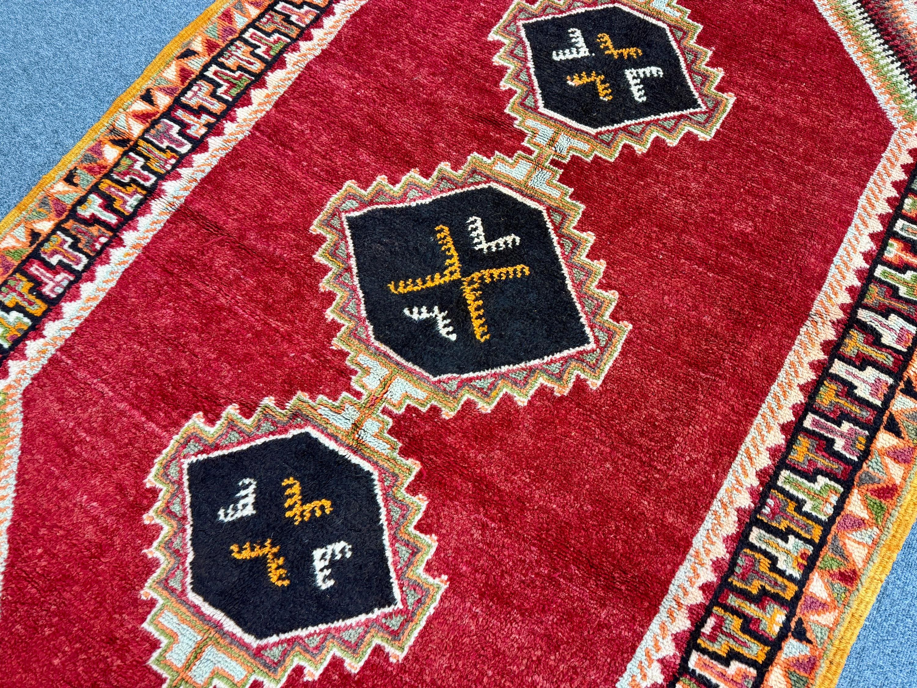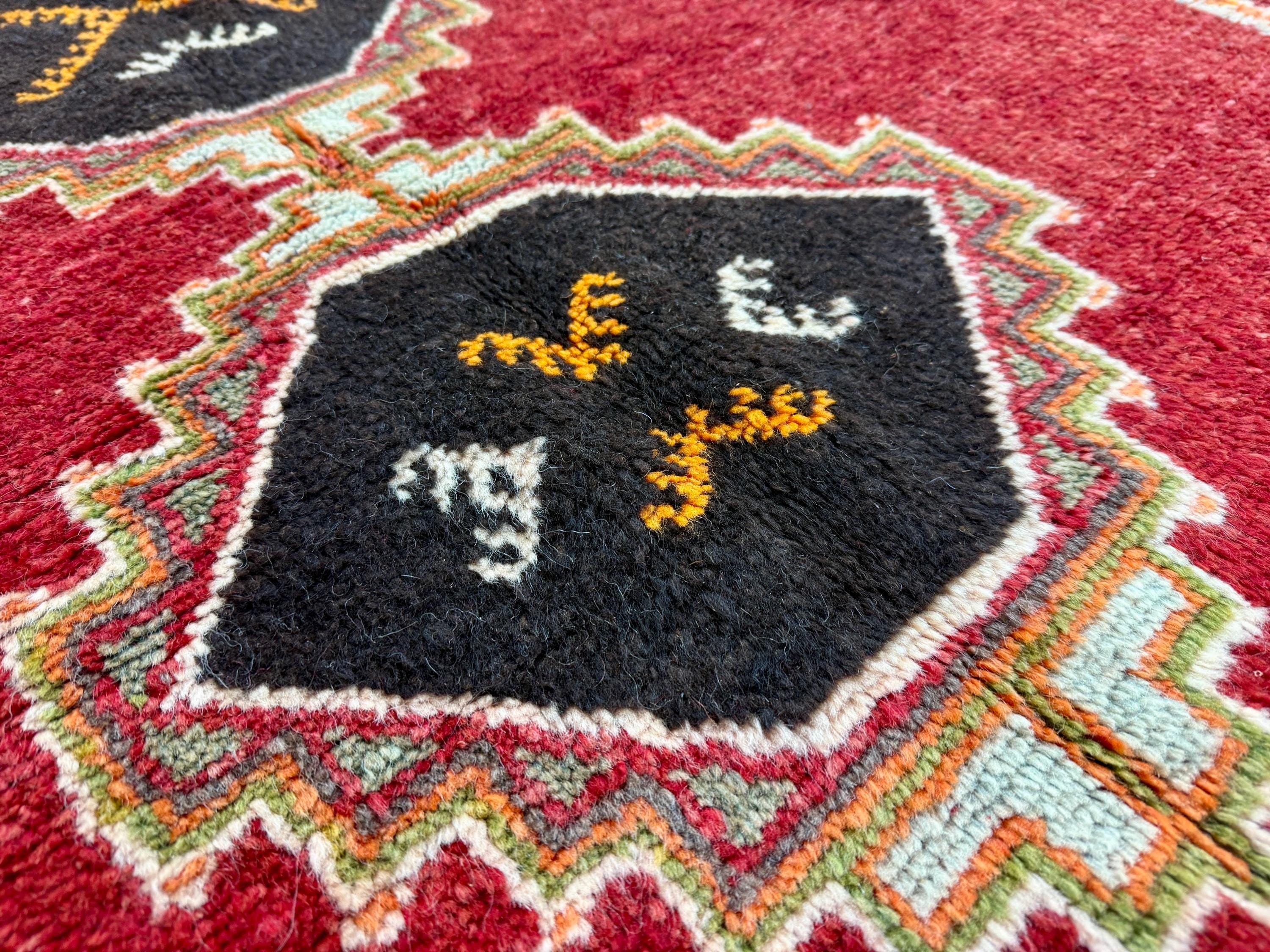 This vintage red Moroccan rug is an authentic Berber piece, entirely handwoven from natural wool by skilled artisans in Morocco. With its deep red tones and timeless tribal character, this rug carries decades of history and craftsmanship, making it a true one-of-a-kind treasure.