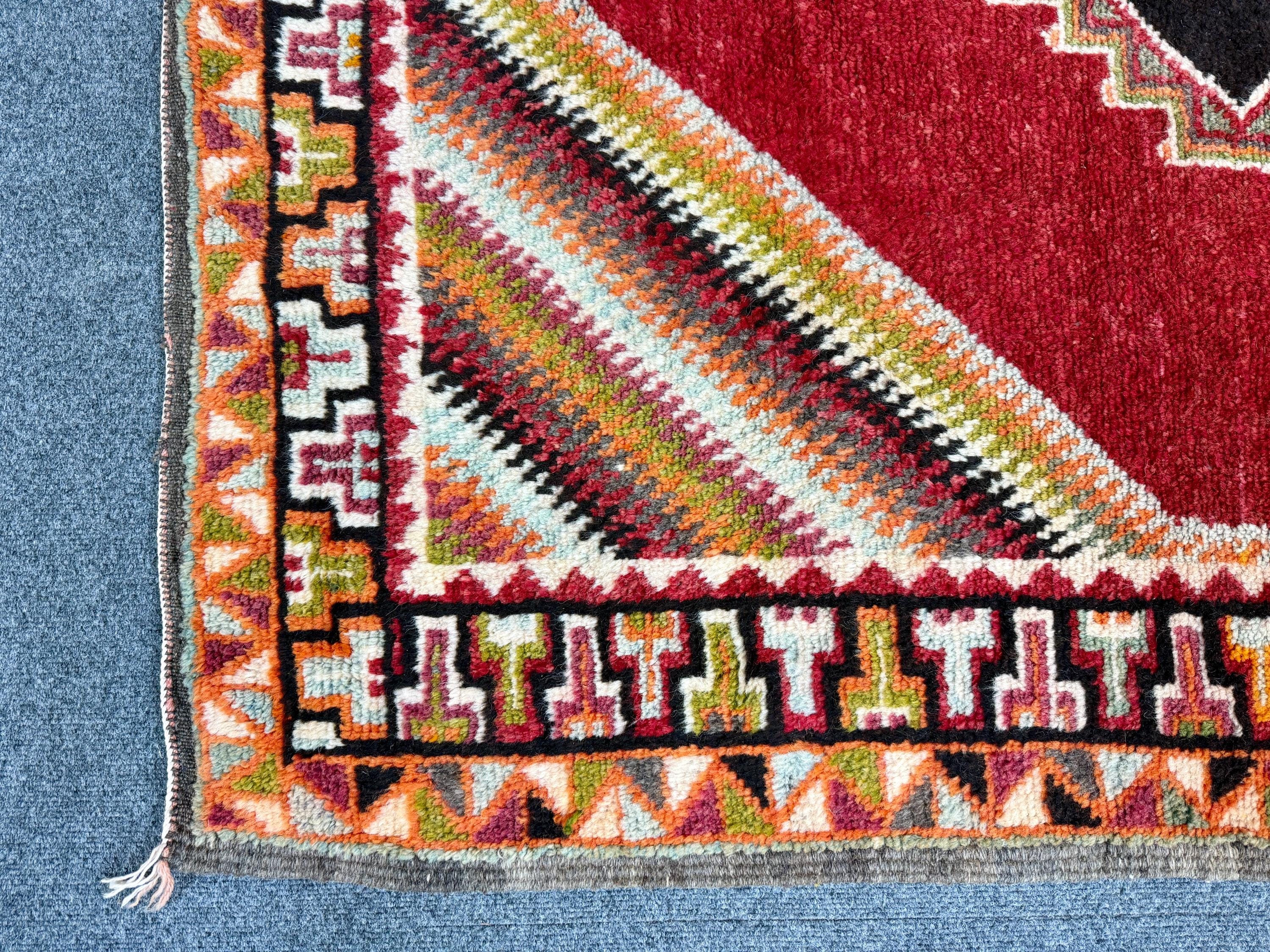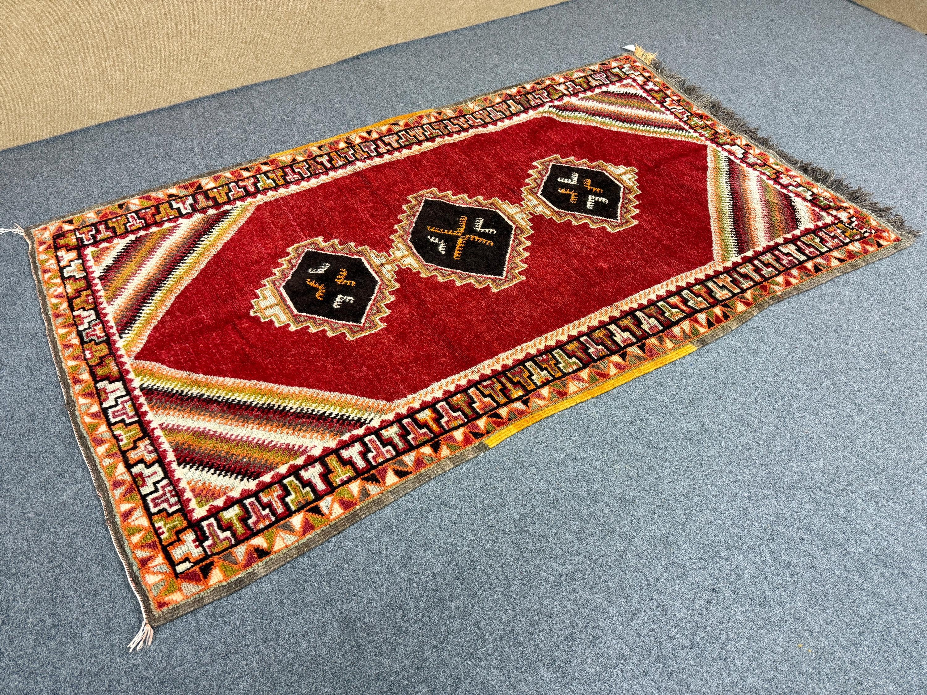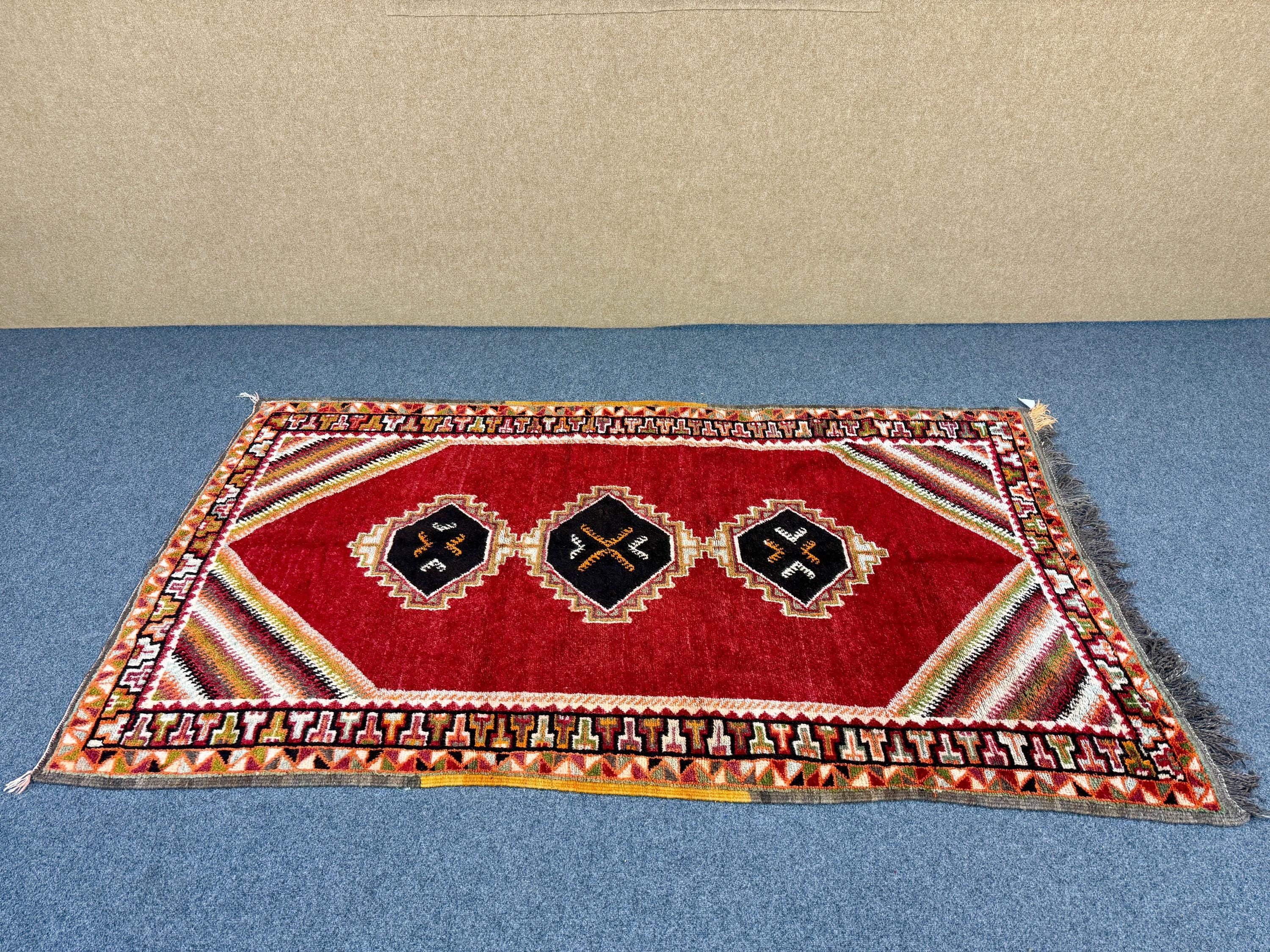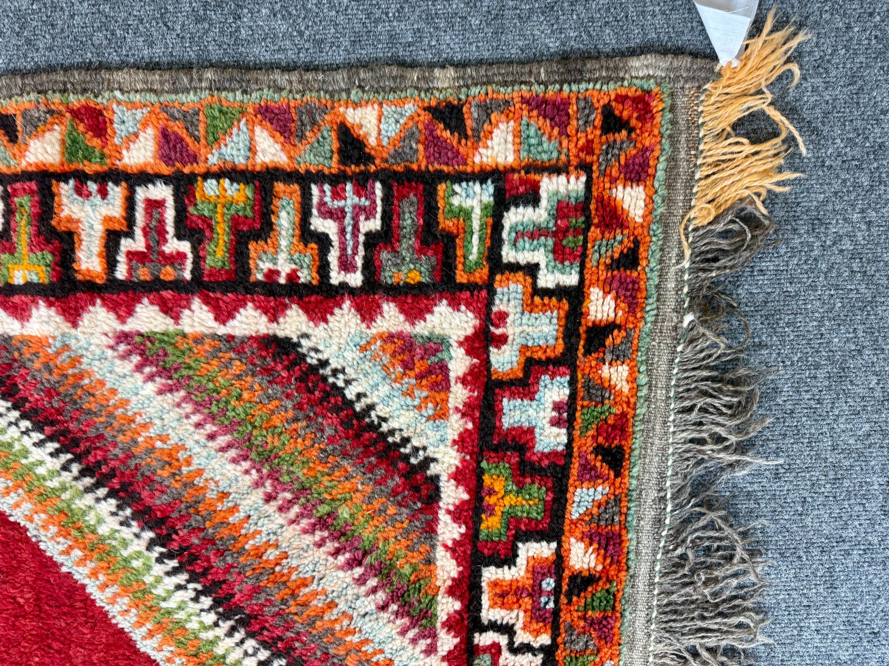 This vintage red Moroccan rug is an authentic Berber piece, entirely handwoven from natural wool by skilled artisans in Morocco. With its deep red tones and timeless tribal character, this rug carries decades of history and craftsmanship, making it a true one-of-a-kind treasure.