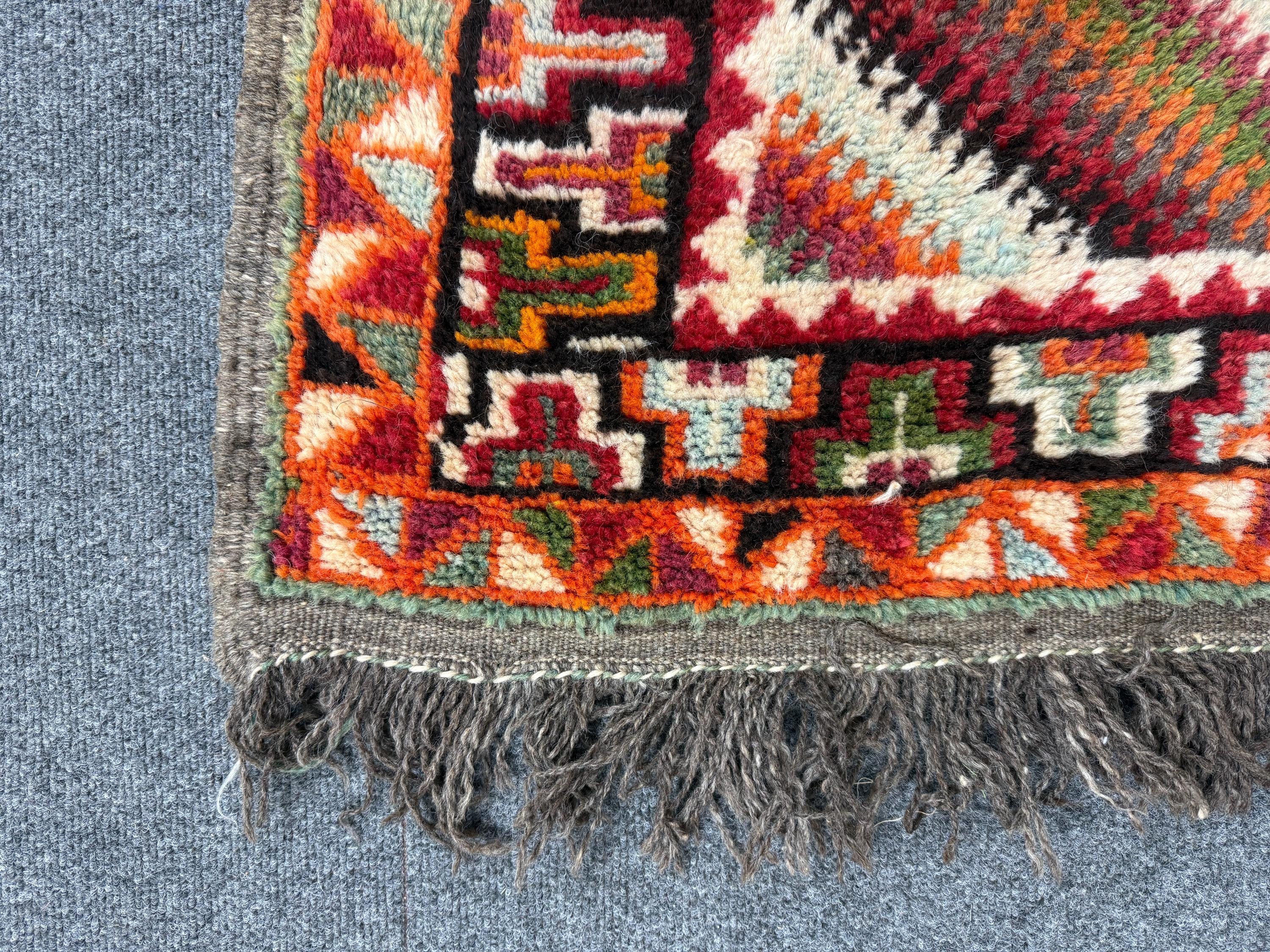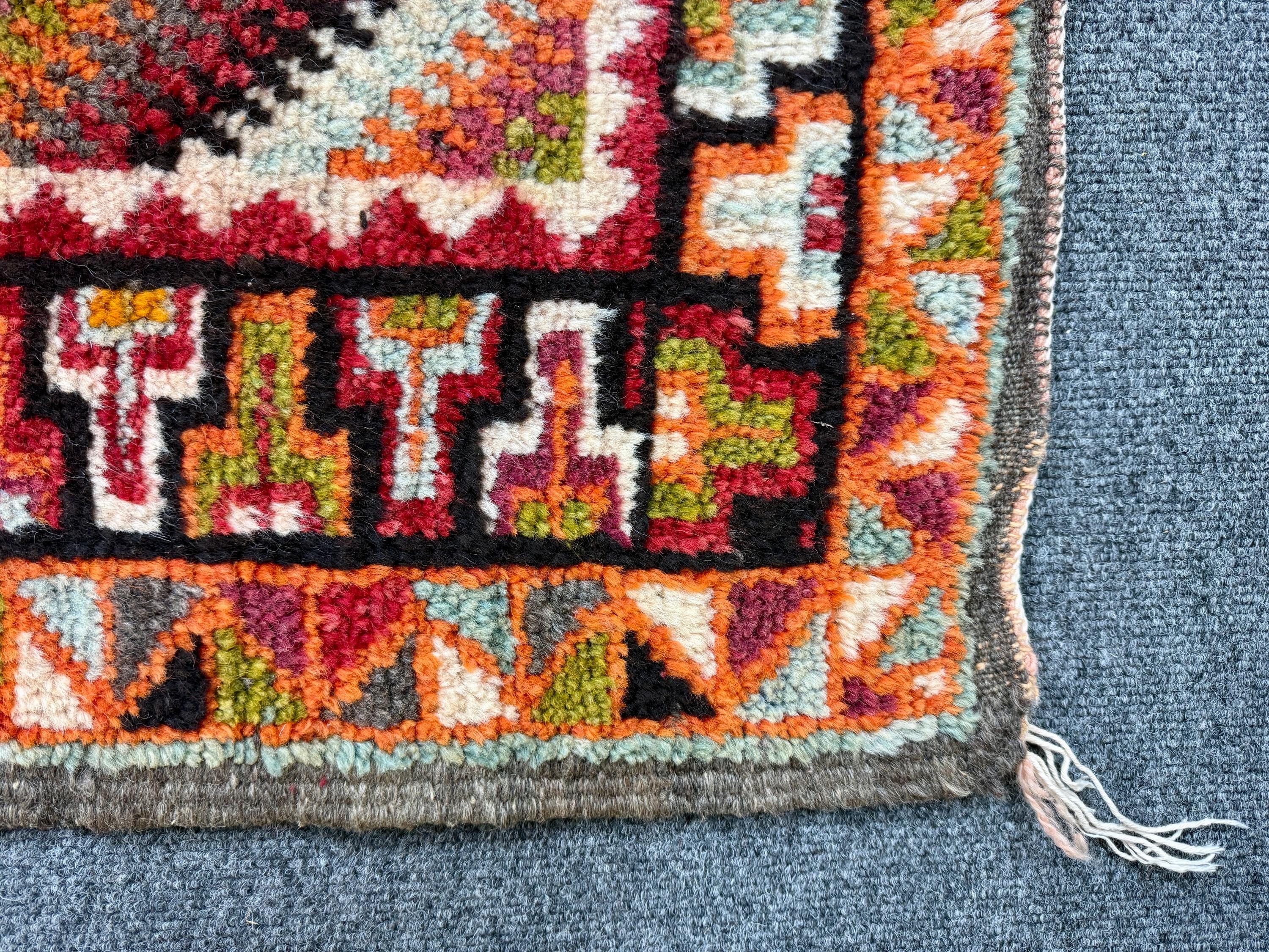 The wool has aged beautifully over time, giving this vintage rug a soft patina and unique character that cannot be replicated. Subtle variations in color and weave are signs of authenticity and add to its charm.
