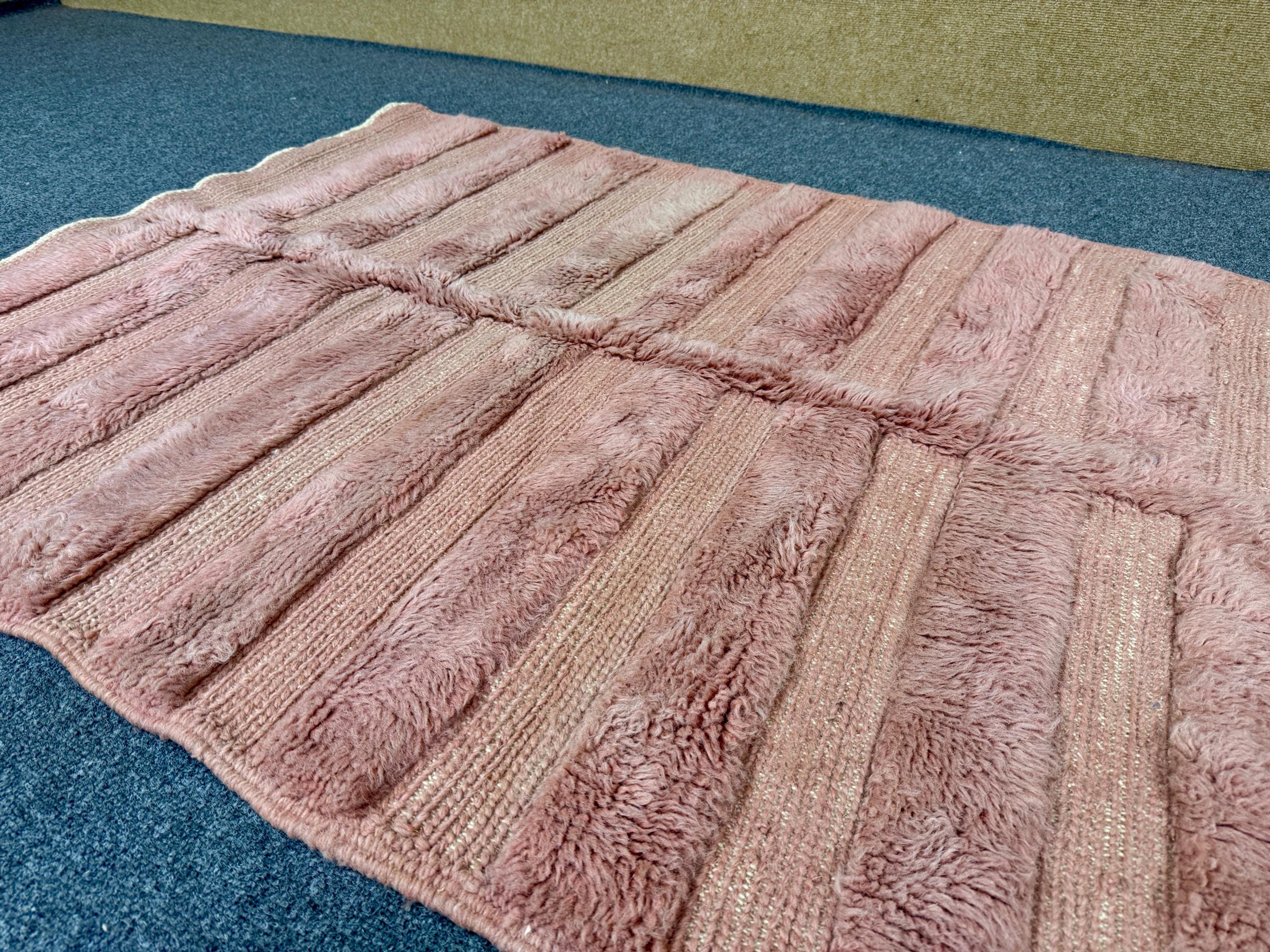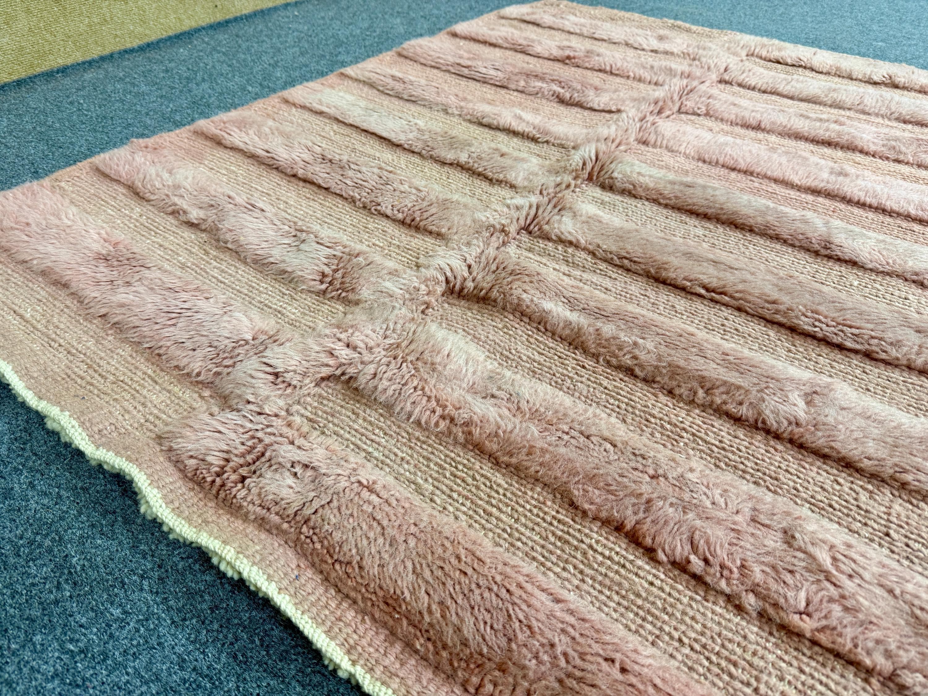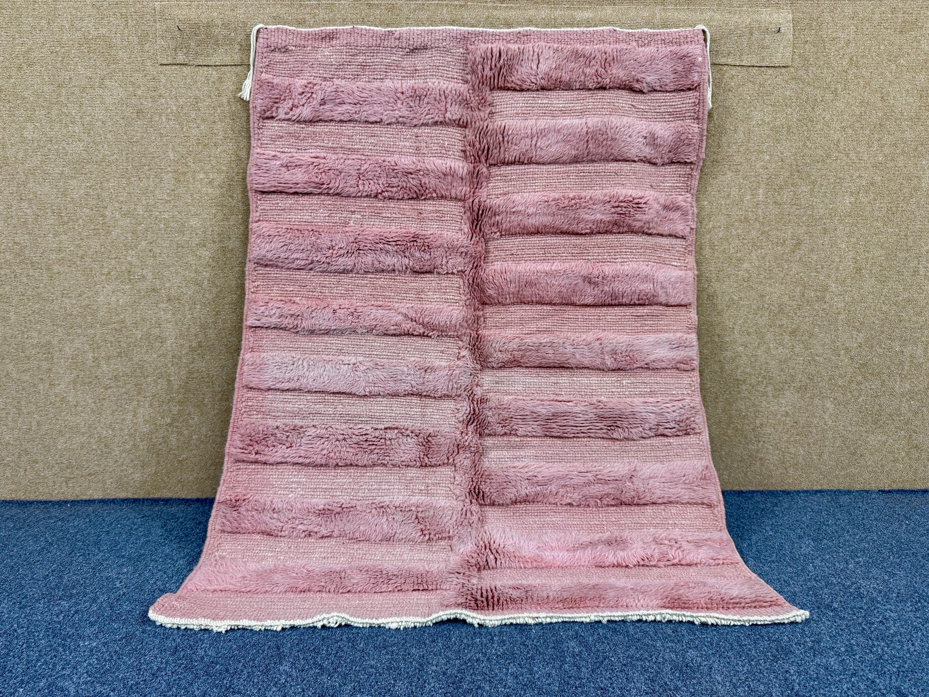 Moroccan Modern Tufted Rug - Custom Pink Berber Rug - Handcrafted Wool Aria - Living Room Carpet