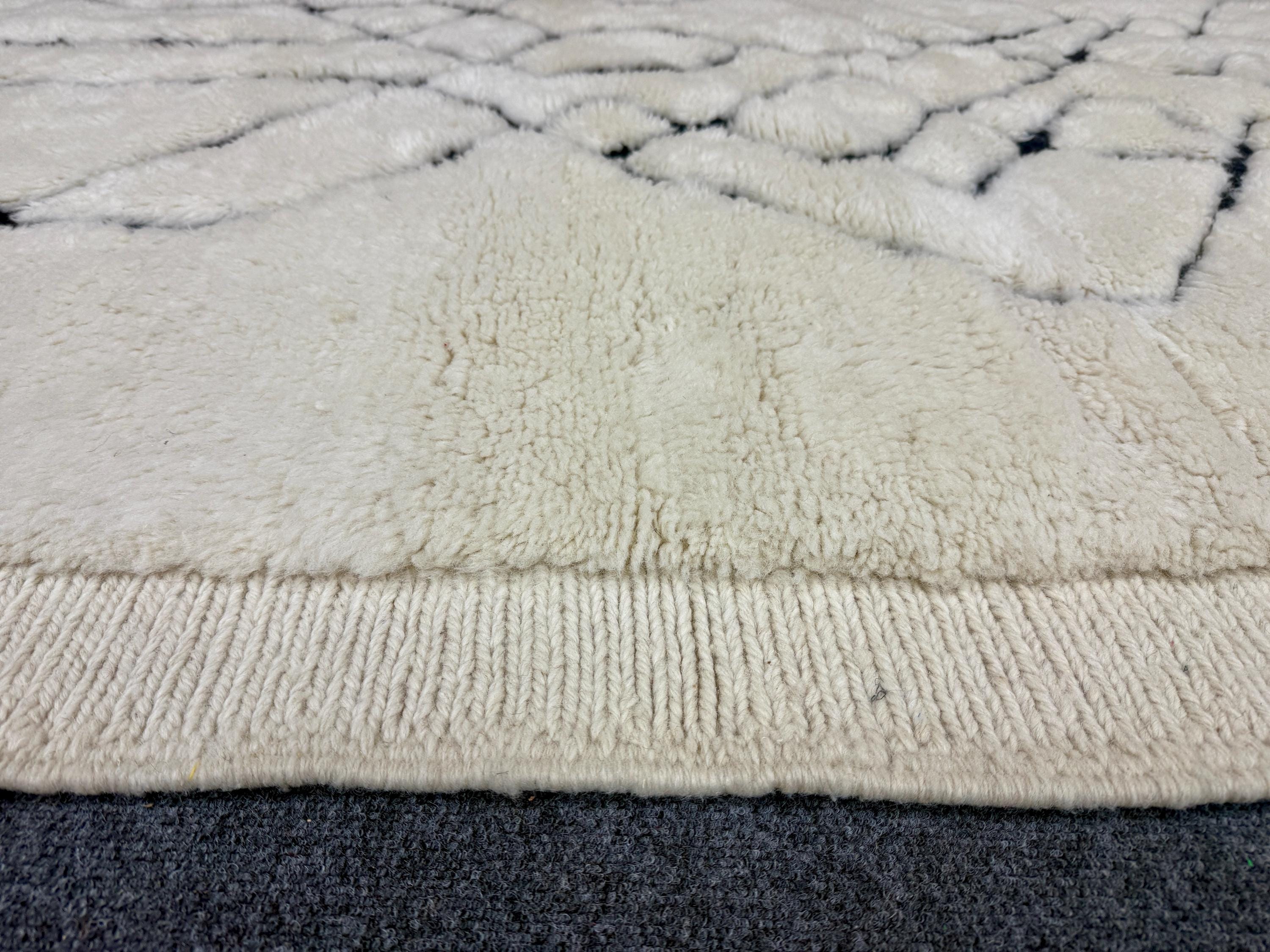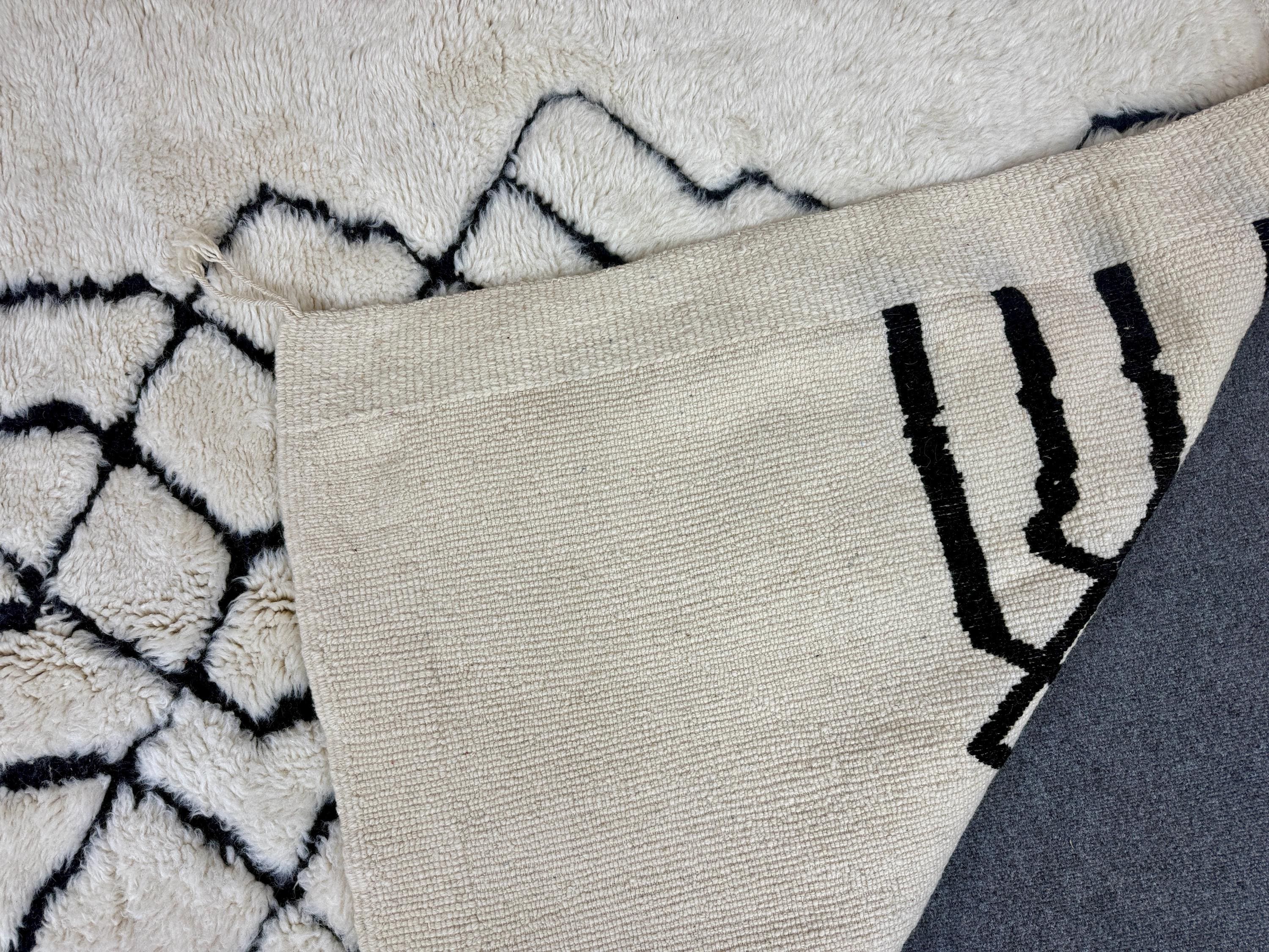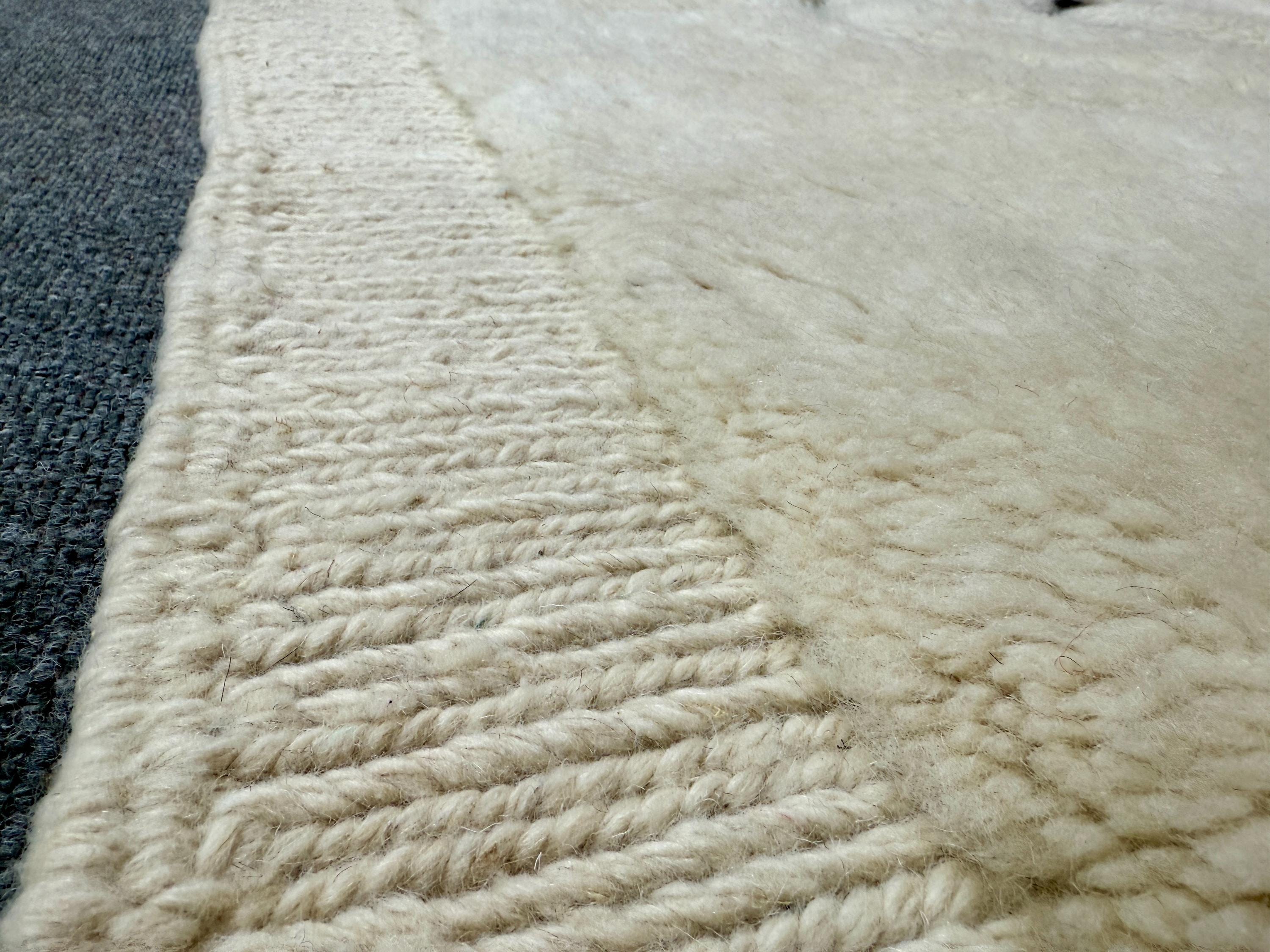 Elevate your interior with this authentic Beni Mrirt luxury Moroccan rug, handwoven in the Atlas Mountains by master Berber artisans. Crafted from 100% premium natural wool, this rug is celebrated for its exceptional softness, dense pile, and timeless elegance.