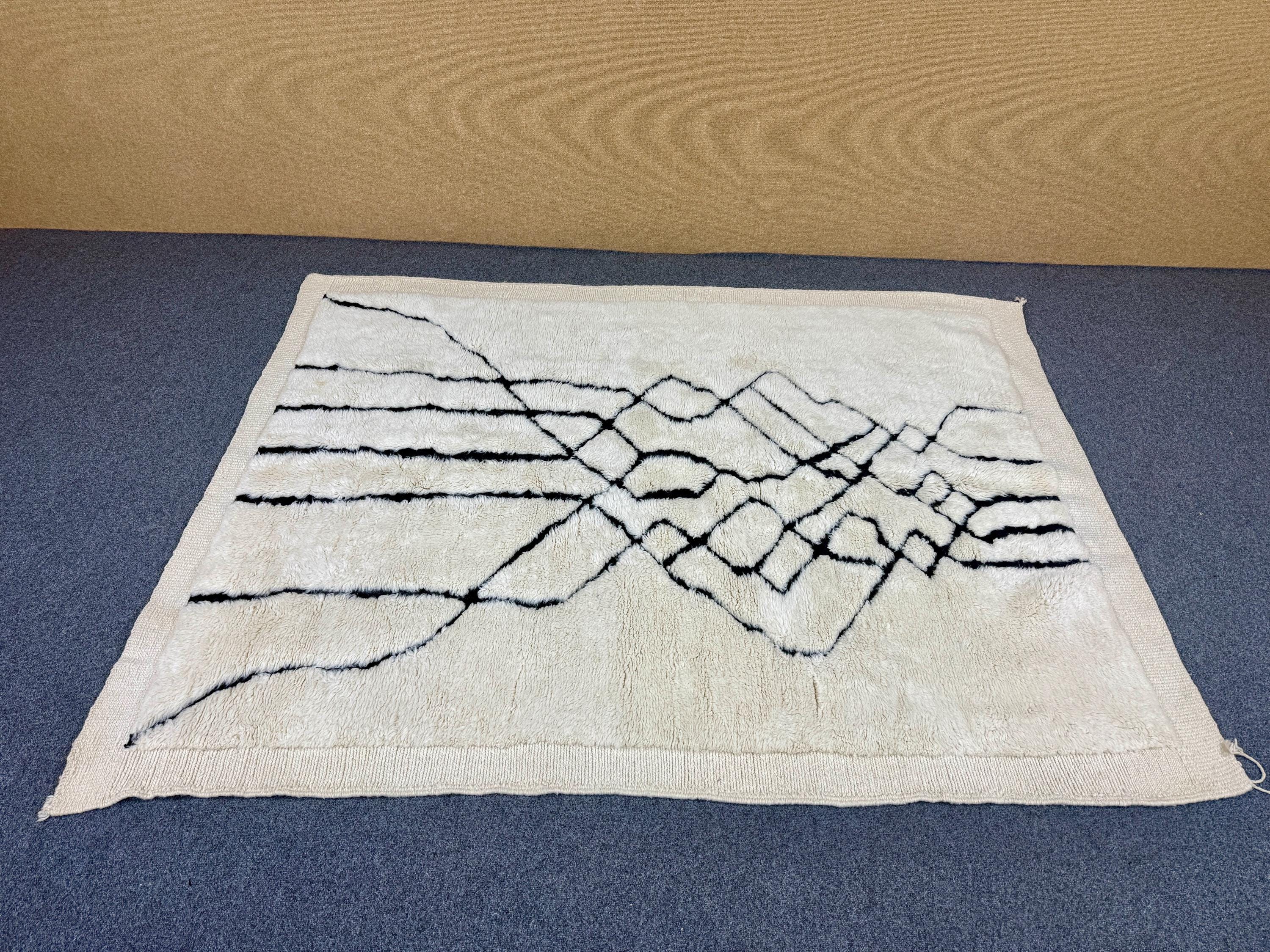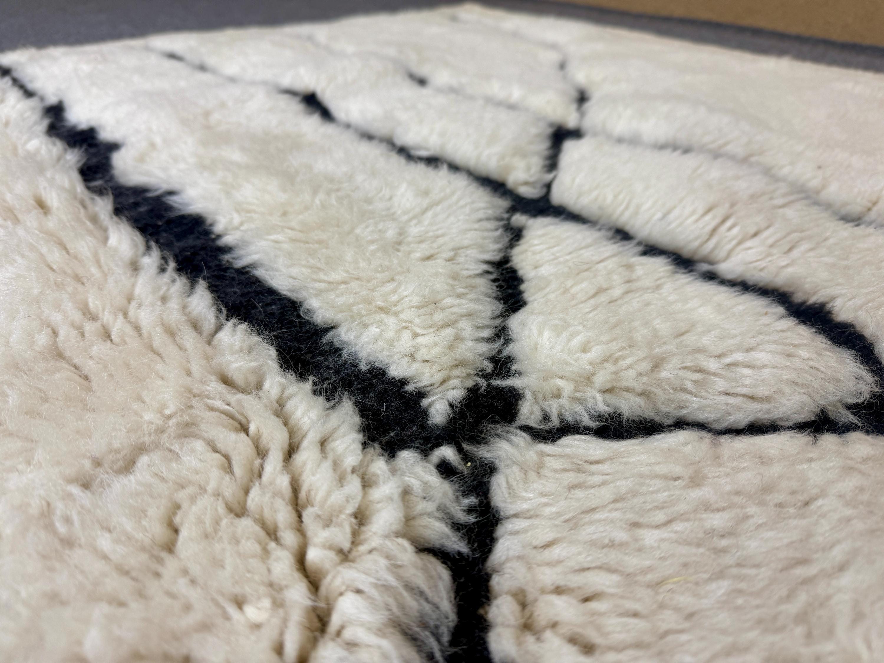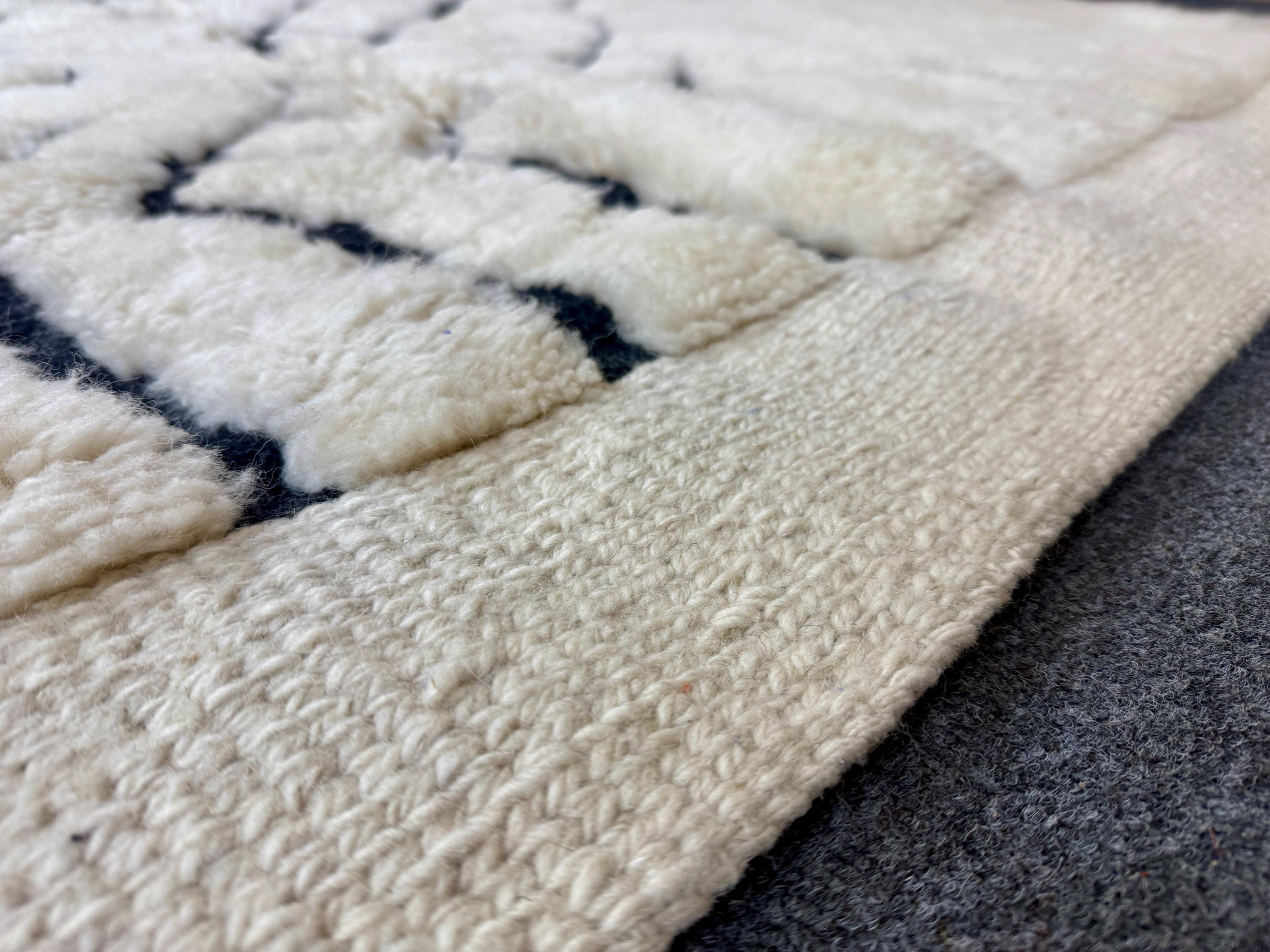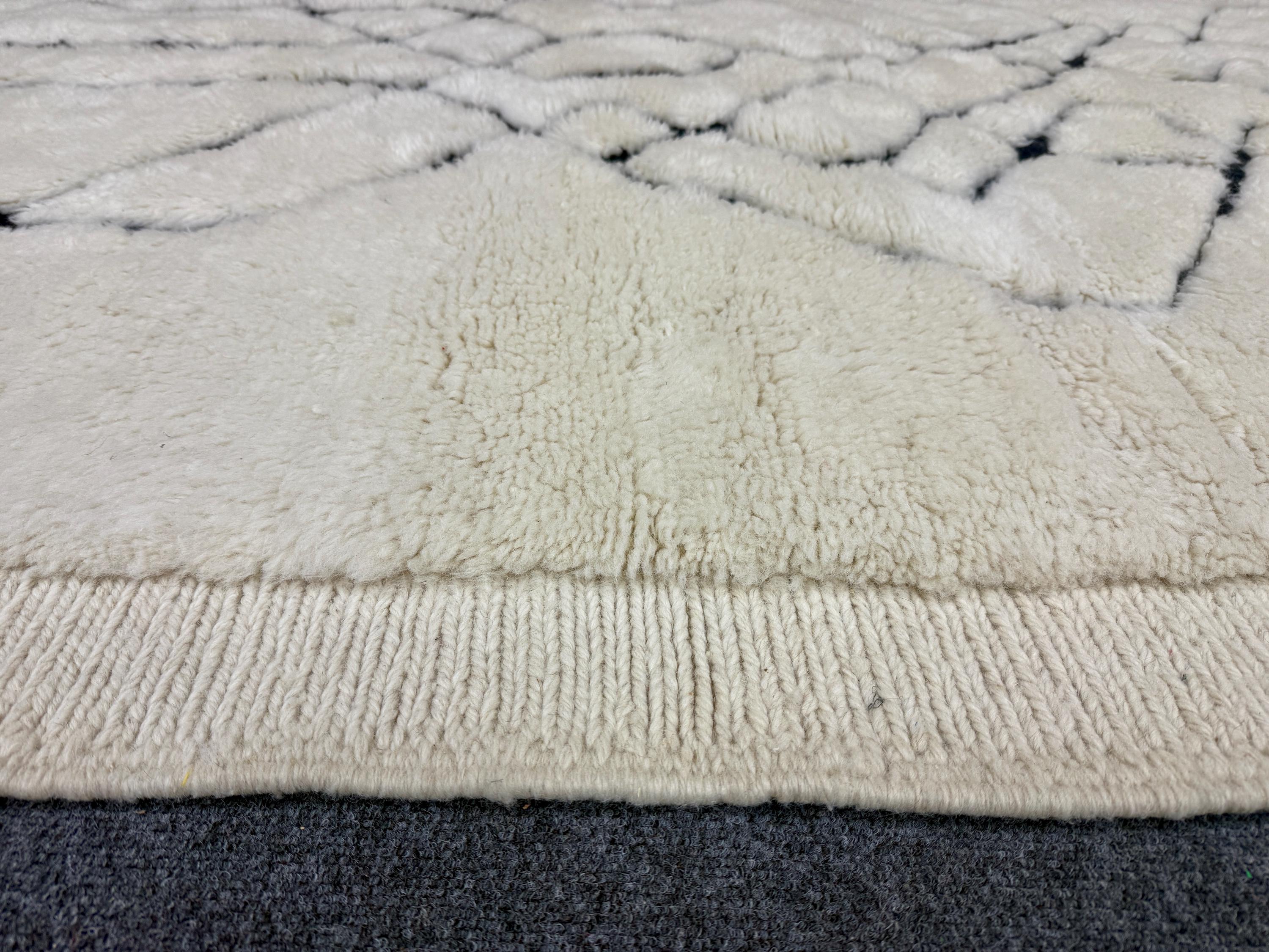 Elevate your interior with this authentic Beni Mrirt luxury Moroccan rug, handwoven in the Atlas Mountains by master Berber artisans. Crafted from 100% premium natural wool, this rug is celebrated for its exceptional softness, dense pile, and timeless elegance.