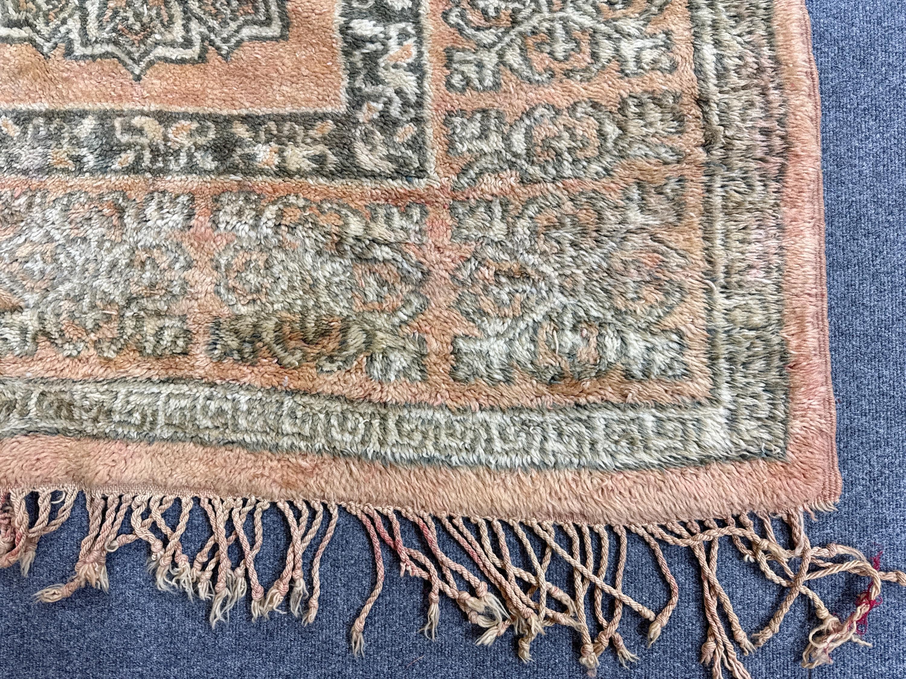 This is a genuine vintage Moroccan rug, and small signs of age or irregularities are part of its charm and authenticity. These details show the true handmade character and history of the rug.